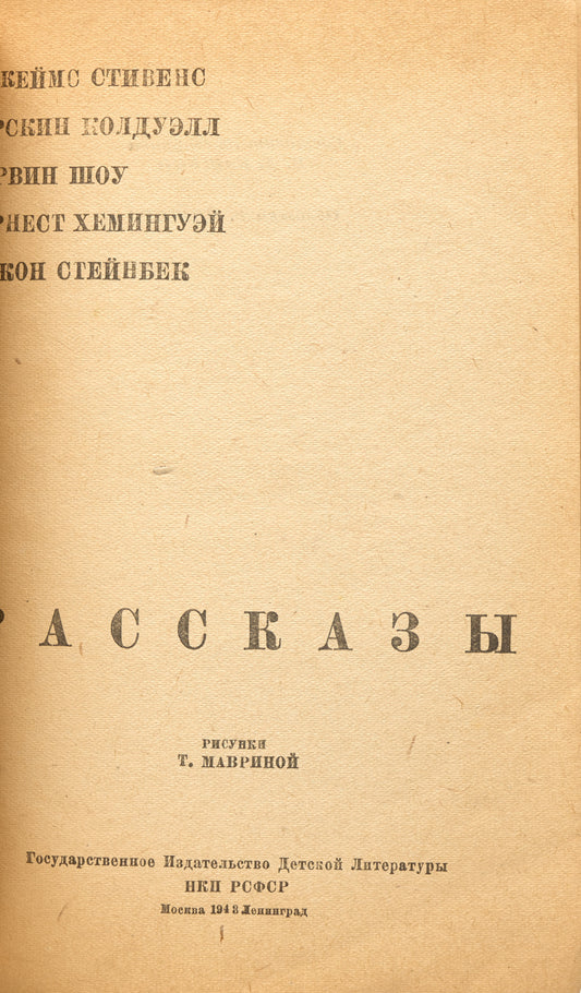 Short Stories. First book appearance of Irwin Shaw in Russian.Regular price $1,200.00 USDRegular priceUnit price per-