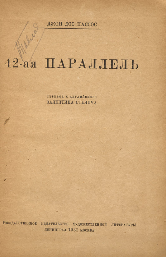 The 42nd Parallel. First Russian book edition.Regular price $350.00 USDRegular priceUnit price per-