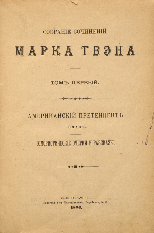 Collected Works of Mark Twain. First Russian translation of 'A Connecticut Yankee in King Arthur’s Court'.Regular price $1,500.00 USDRegular priceUnit price per-