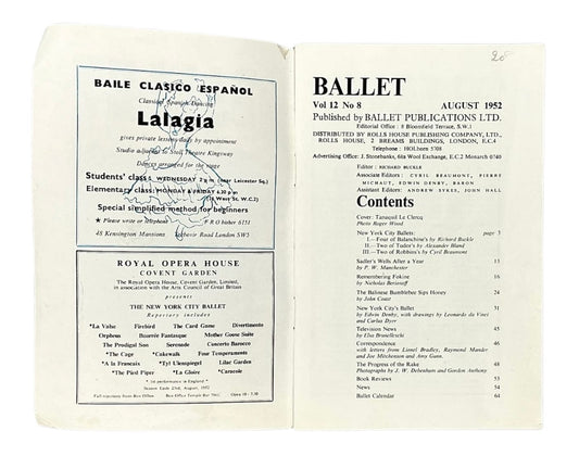 Ballet. Vol. 12, No 8. August 1952.Regular price $30.00 USDRegular priceUnit price per-