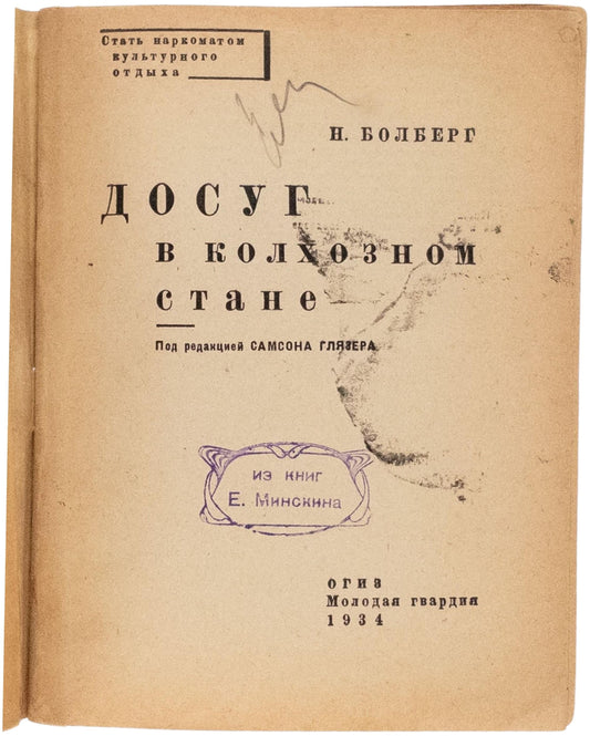 Leisure in the Kolkhoz Camp. A rare guide for collective farmers.Regular price $1,190.00 USDRegular priceUnit price per-