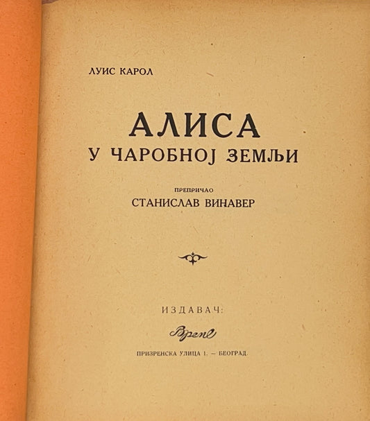 Alice's Adventures in Wonderland. First Serbo-Croatian edition.Regular price $5,670.00 USDRegular priceUnit price perSale price $5,670.00 USD -