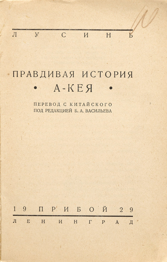 The True Story of Ah Q. Very rare first Lu Xun's Russian book.Regular price $4,500.00 USDRegular priceUnit price per-