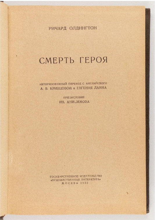 Death of a Hero. Second of this translation of Aldington’s first book in Russian.Regular price $730.00 USDRegular priceUnit price per-