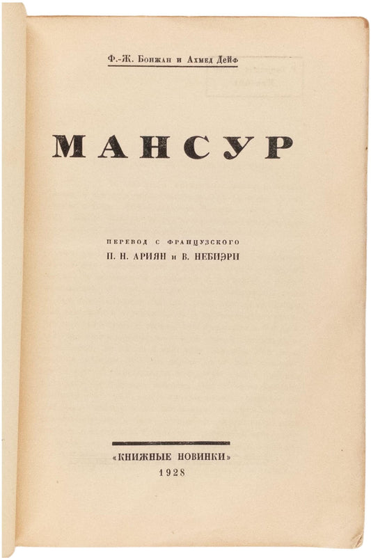 Mansour. First and only edition of this translation.Regular price $860.00 USDRegular priceUnit price per-