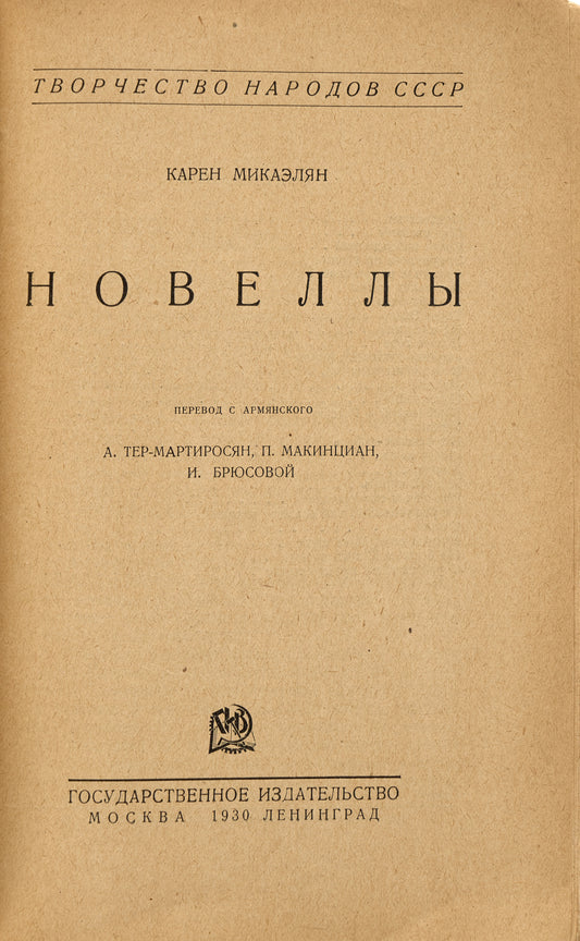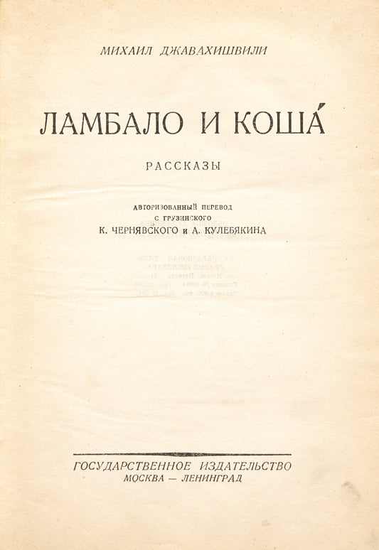 Lambalo and Qasha. First Russian edition of any book by Javakhishvili.Regular price $190.00 USDRegular priceUnit price per-