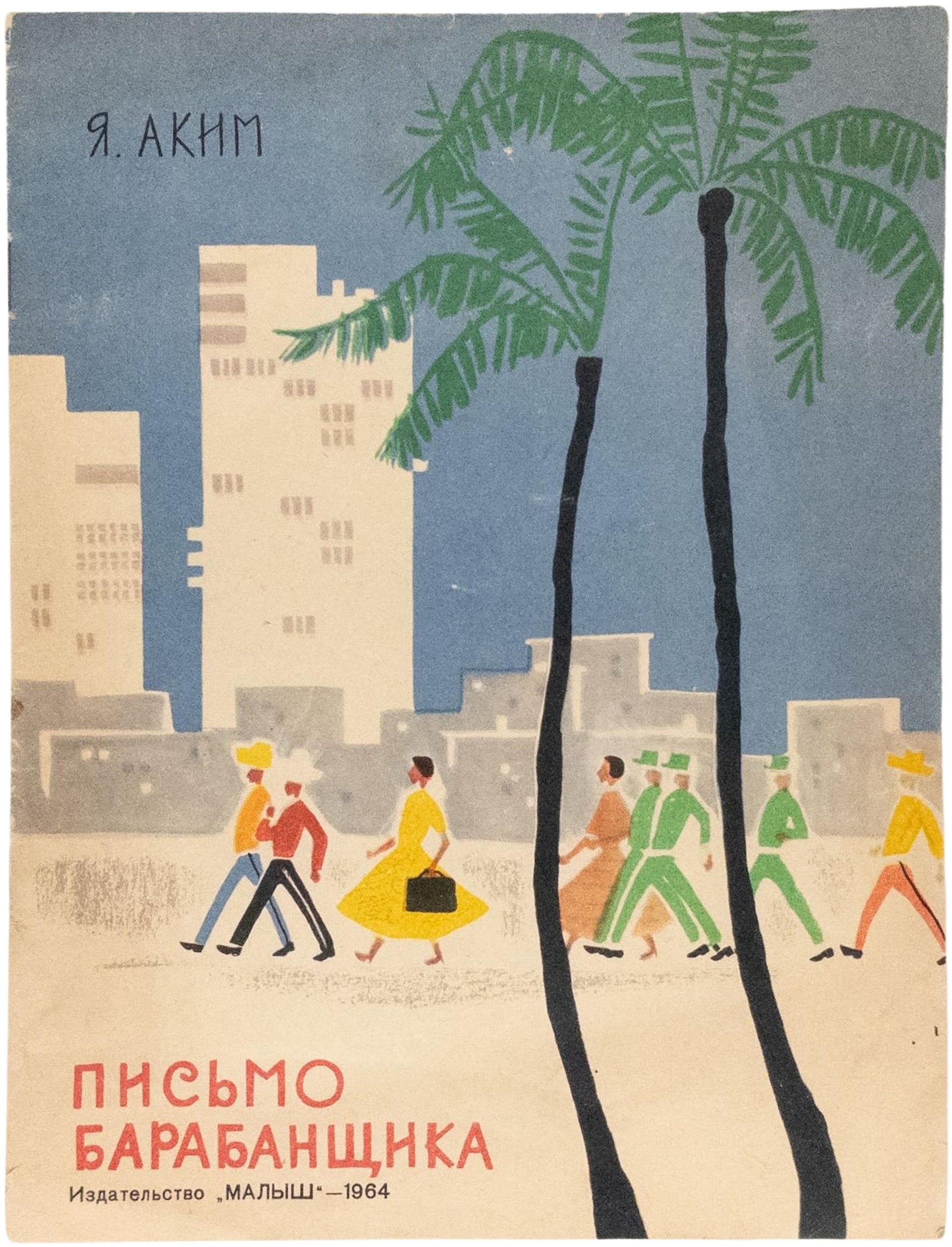 This book features a poem by children's poet and translator Iakov Akim (1923–2013) about a boy who dreams of growing a beard like Fidel Castro. After watching a film about the Cuban Revolution, he becomes inspired to join Castro and help liberate Cuba from the dictatorship of Fulgencio Batista. On the final page, we see the text of the boy’s letter to Castro, accompanied by an illustration of a postman delivering the letter to Castro as he speaks on stage.