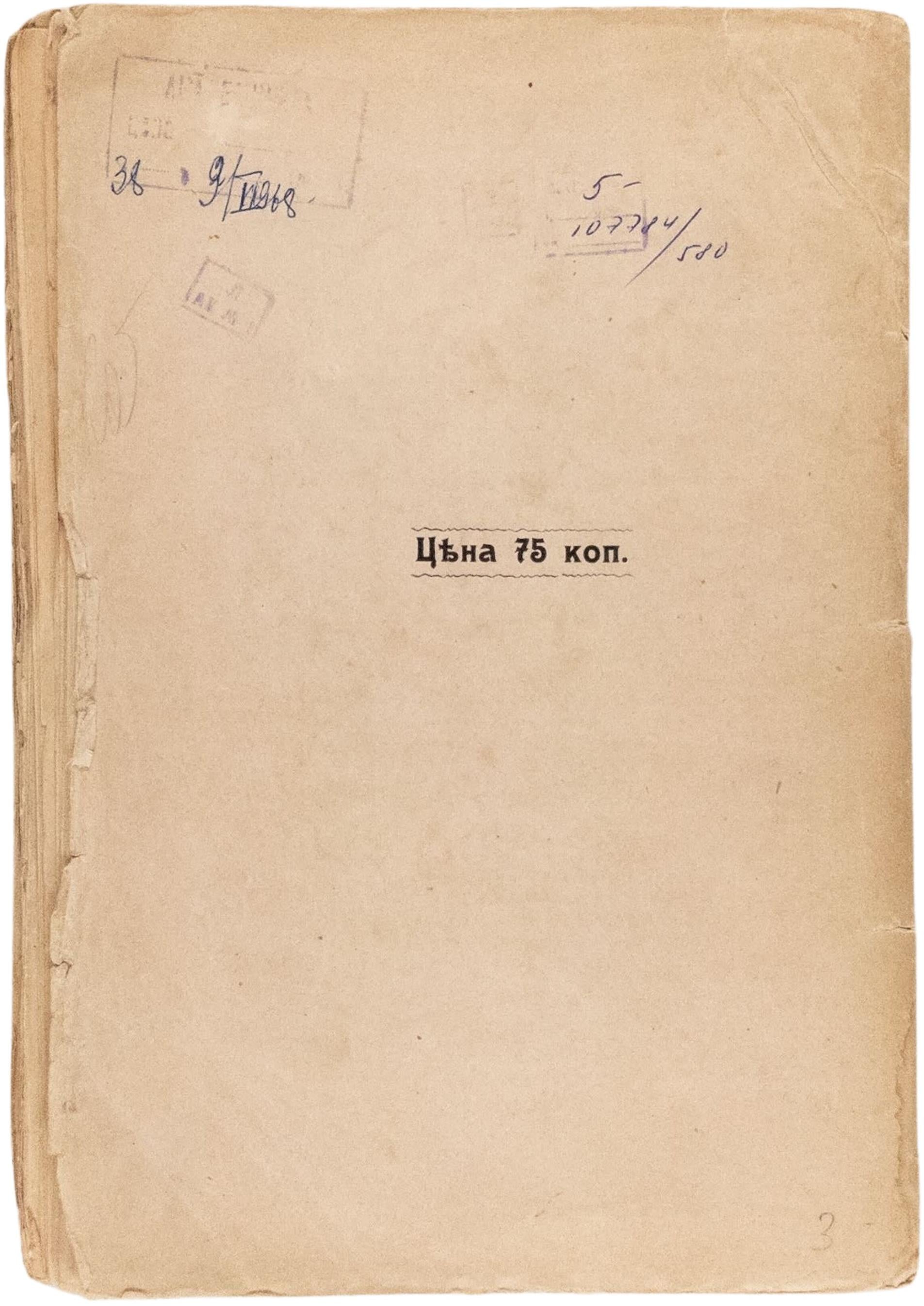 In near good condition, rubbed, lightly bowed, minor soiling, small losses to spine, splitting to spine and title, curling to cover edges, short tears to cover, some dampstaining, pictorial bookplate ‘Ex Libris Villi Petritskogo' on front cover verso and bookplate stamp ‘Iz knig V.A. Petritskogo’ on title and last page.