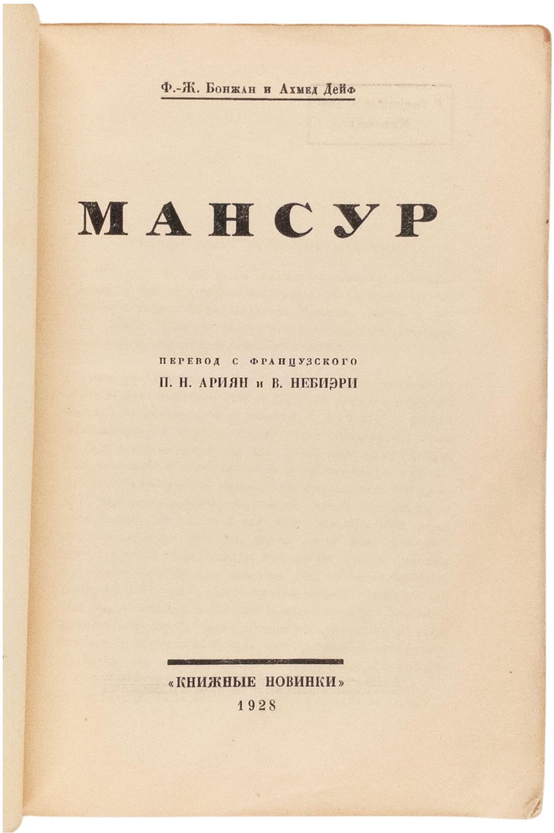 Mansour. First and only edition of this translation.
