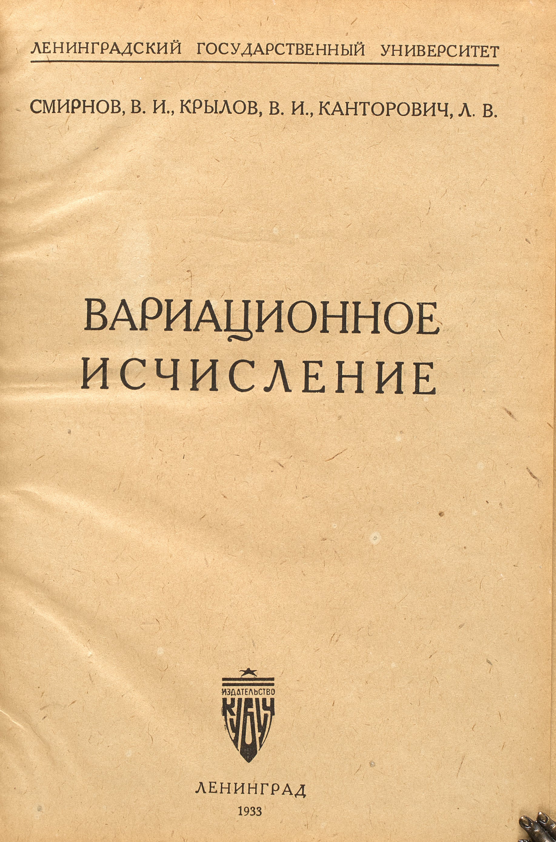 Smirnov V., Krylov I., Kantorovich L. [Calculus of Variations]. Variatsionnoe Ischislenie.