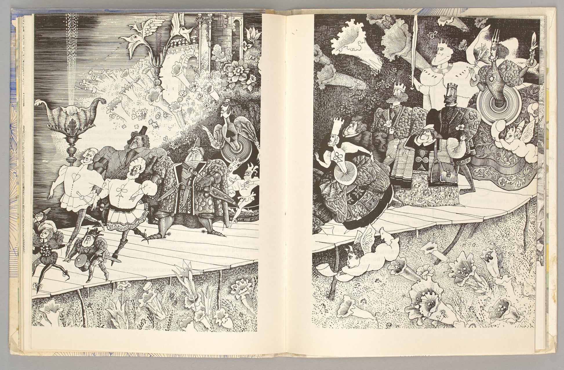 The book is illustrated by Gennagy Kalinovskii (1929–2006), one of the most famous Soviet book artists. Kalinovskii studied at the Surikov State Art Institute and later worked as an illustrator for magazines. 'Alice’s Adventures in Wonderland' was his first major success, and he went on to create iconic illustrations for other classic books such as 'Mary Poppins', 'Winnie-the-Pooh' (in collaboration with B. Diodorov), and J.R.R. Tolkien’s 'The Fellowship of the Ring'.