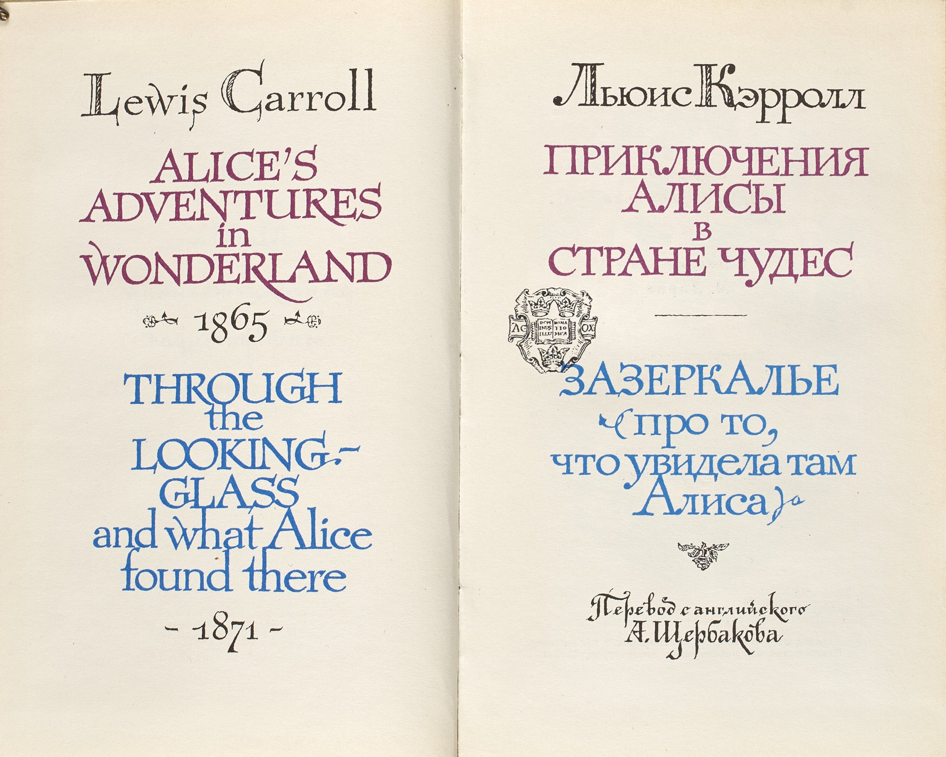 Carroll, Lewis [Alice's Adventures in Wonderland. Through the Looking-Glass and What Alice Found There]. Prikliucheniia Alisy v Strane Chudes. Zazerkal'e (pro To, chto Uvidela Tam Alisa).