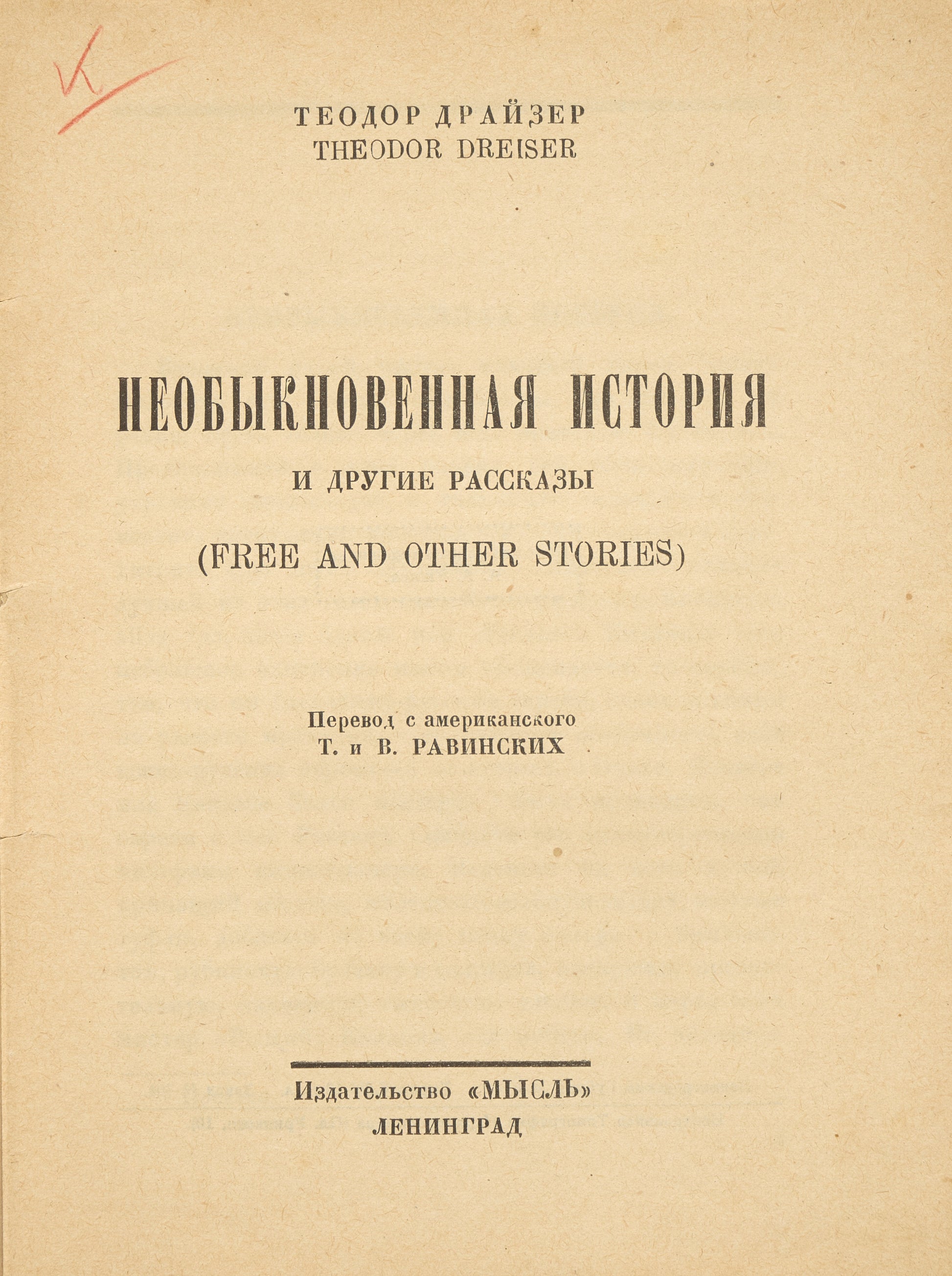 Dreiser, Theodore [An Unusual History and Other Stories]. Neobyknovennaia Istoriia i Drugie Rasskazy = Free, and Other Stories.