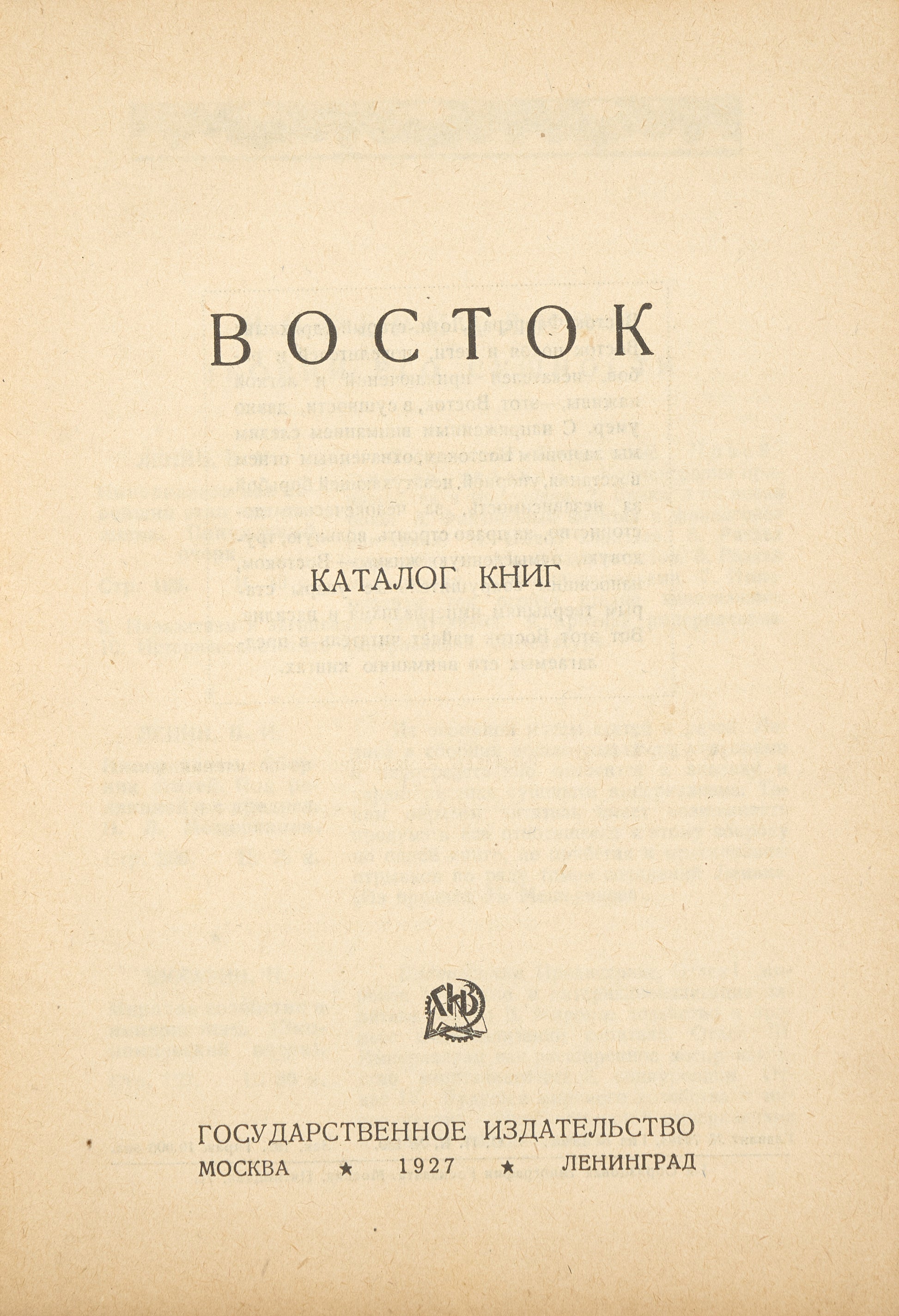 [Eastern World: Books catalogue]. Vostok: Katalog kning.