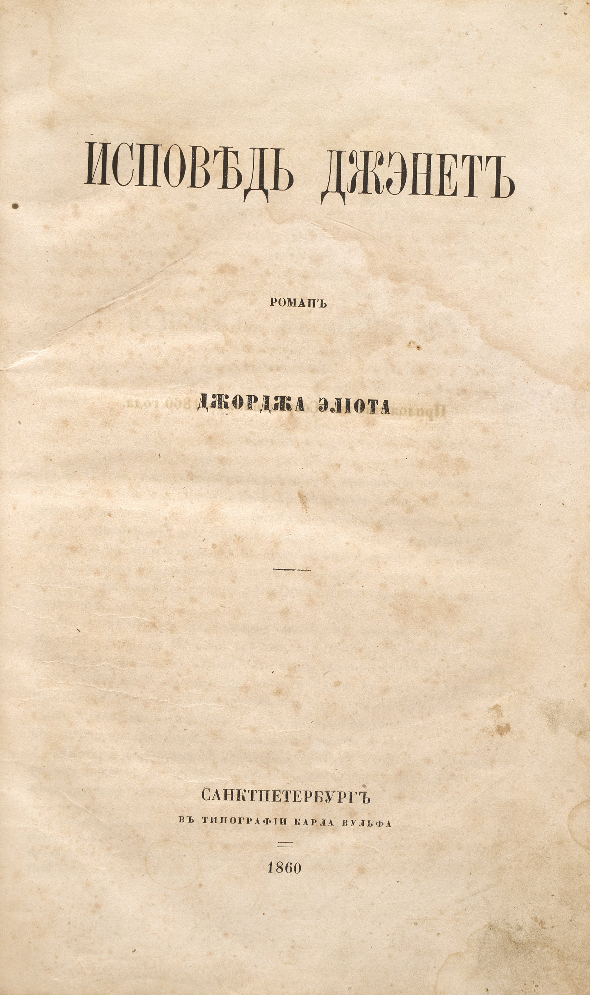 It is worth noting that most of George Eliot’s novels were published in Russian the same year they appeared in English, suggesting that she had a well-established readership in Russia. Judging by the number of editions her works went through, no other English author—apart from Dickens—enjoyed such popularity.
