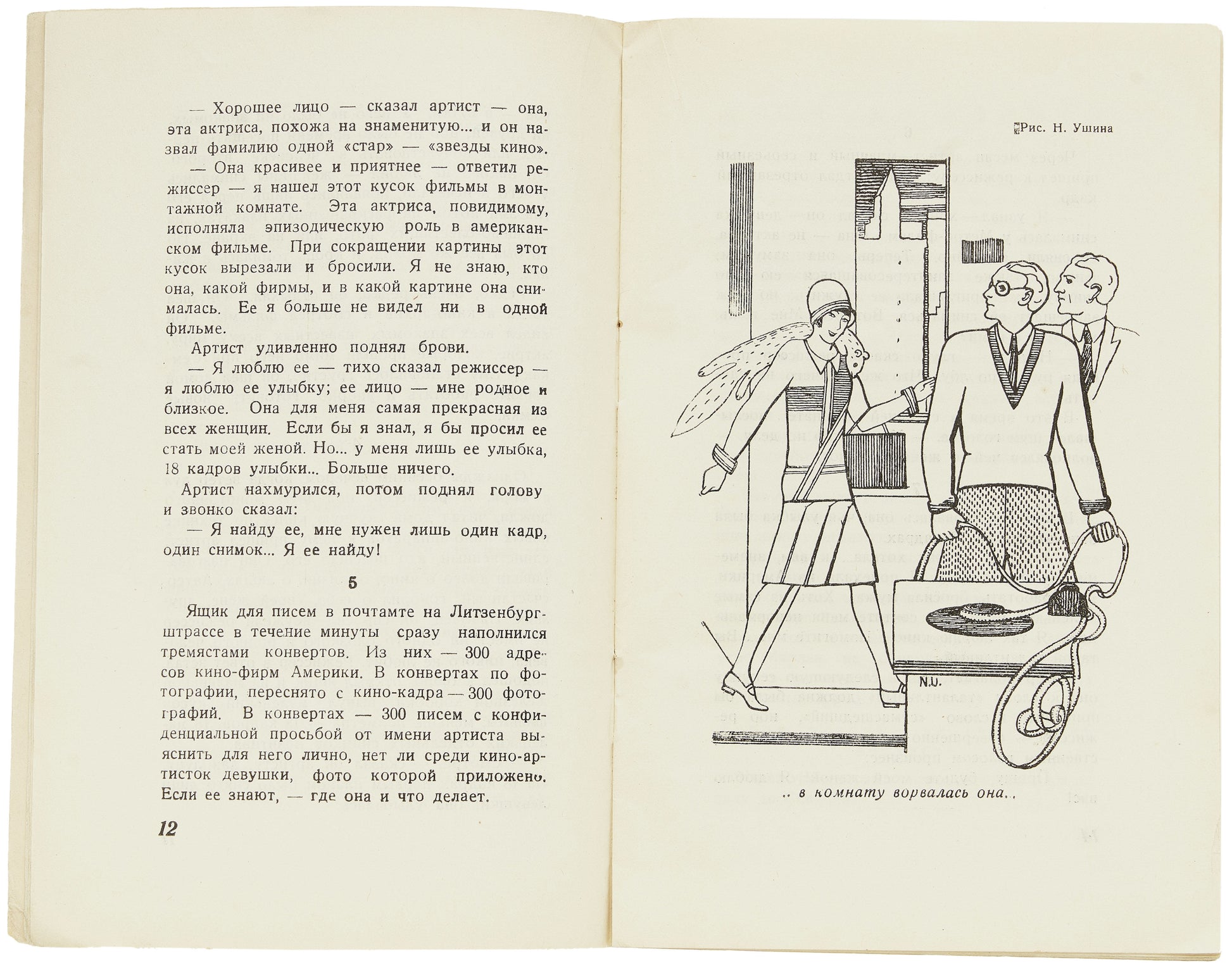 This collection of stories about movie actors and actresses was illustrated by the theater artist and book illustrator Nikolay Ushin (1898-1942). Tragically, he passed away during the siege of Leningrad.
