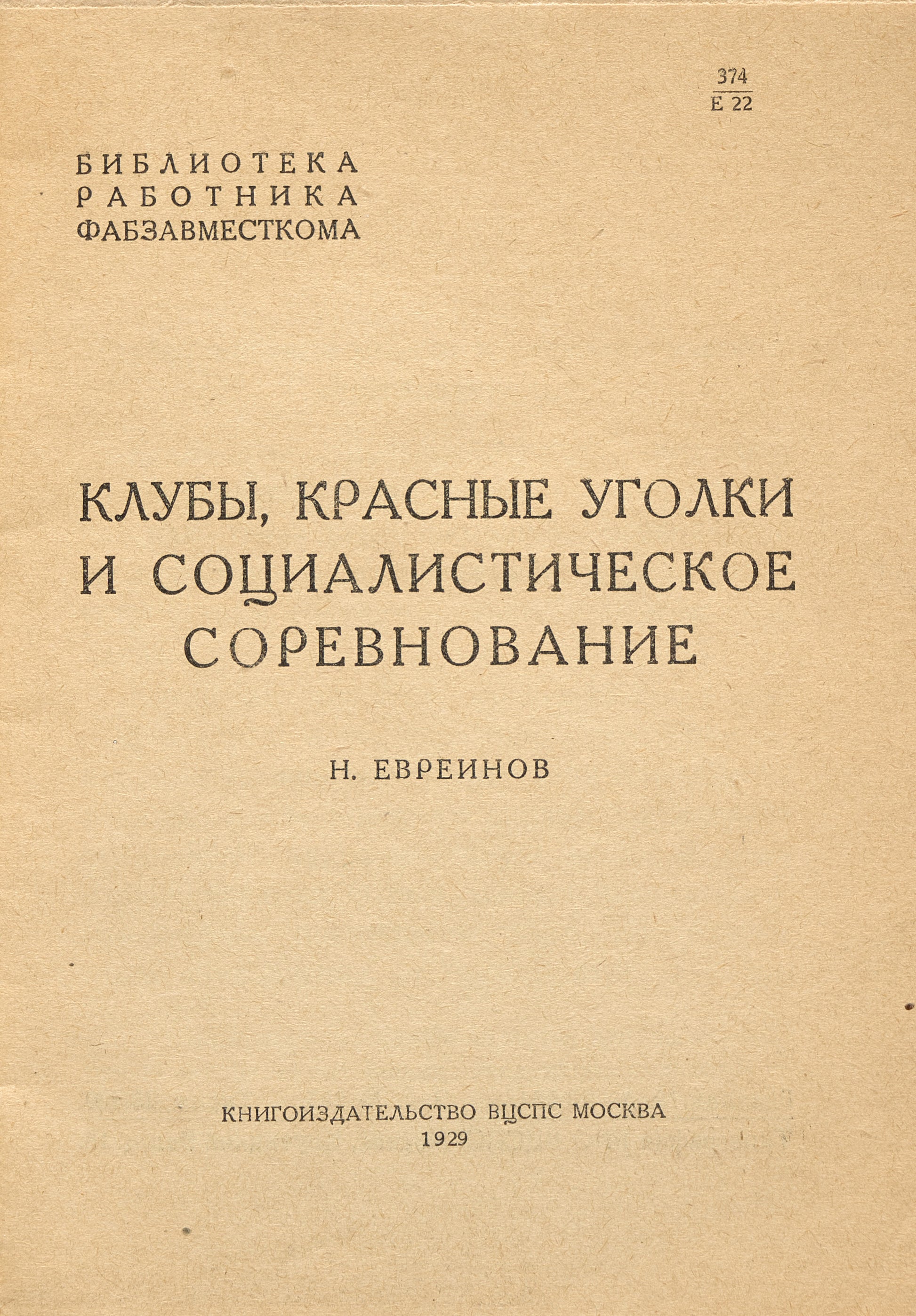 Evreinov, N. [Clubs, Red Corners, and Socialist Competition]. Kluby, Krasnye Ugolki i Sotsialisticheskoe Sorevnovanie.