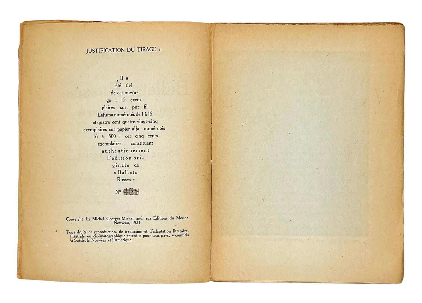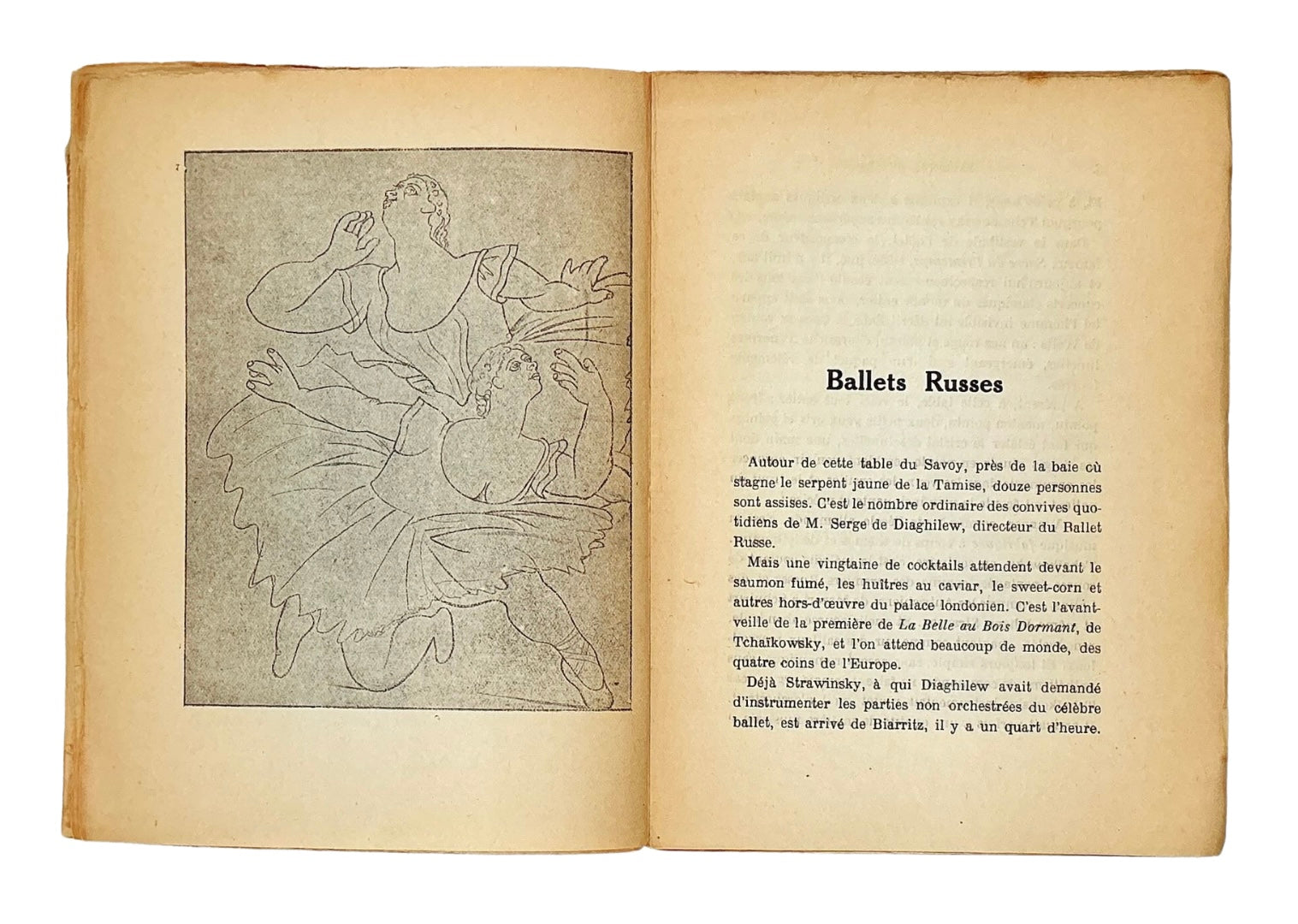 This book, written by Michel Georges-Michel (1883–1985), a French painter, journalist, novelist, and translator, who worked with the Ballets Russes of Sergei Diaghilev from 1913 to 1929, is complemented by three drawings by Pablo Picasso, including a color illustration featured on the cover and two full-page black-and-white reproductions, one of which is a portrait of Igor Stravinsky.