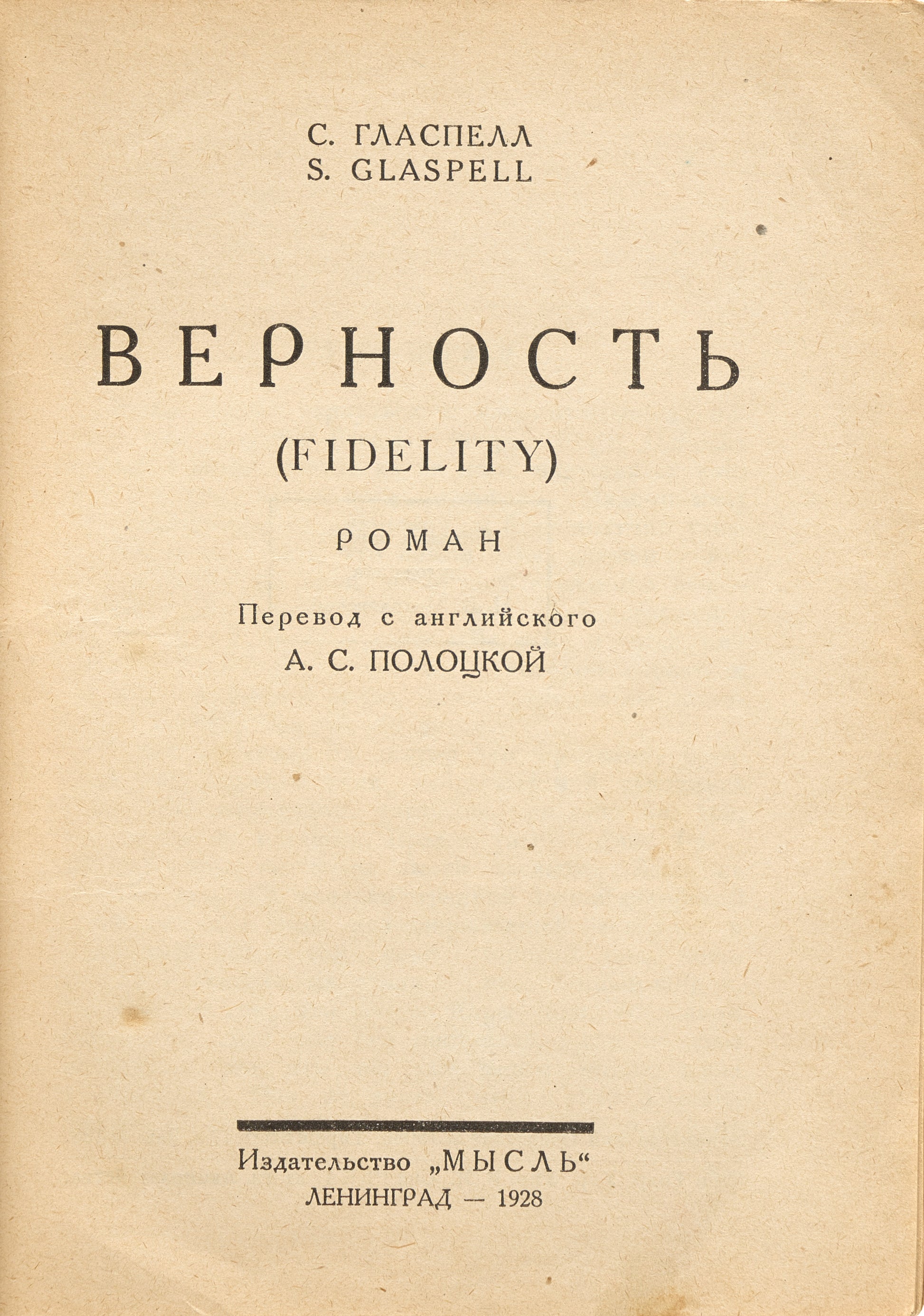 Fidelity. The only book by Susan Glaspell published in Russian.