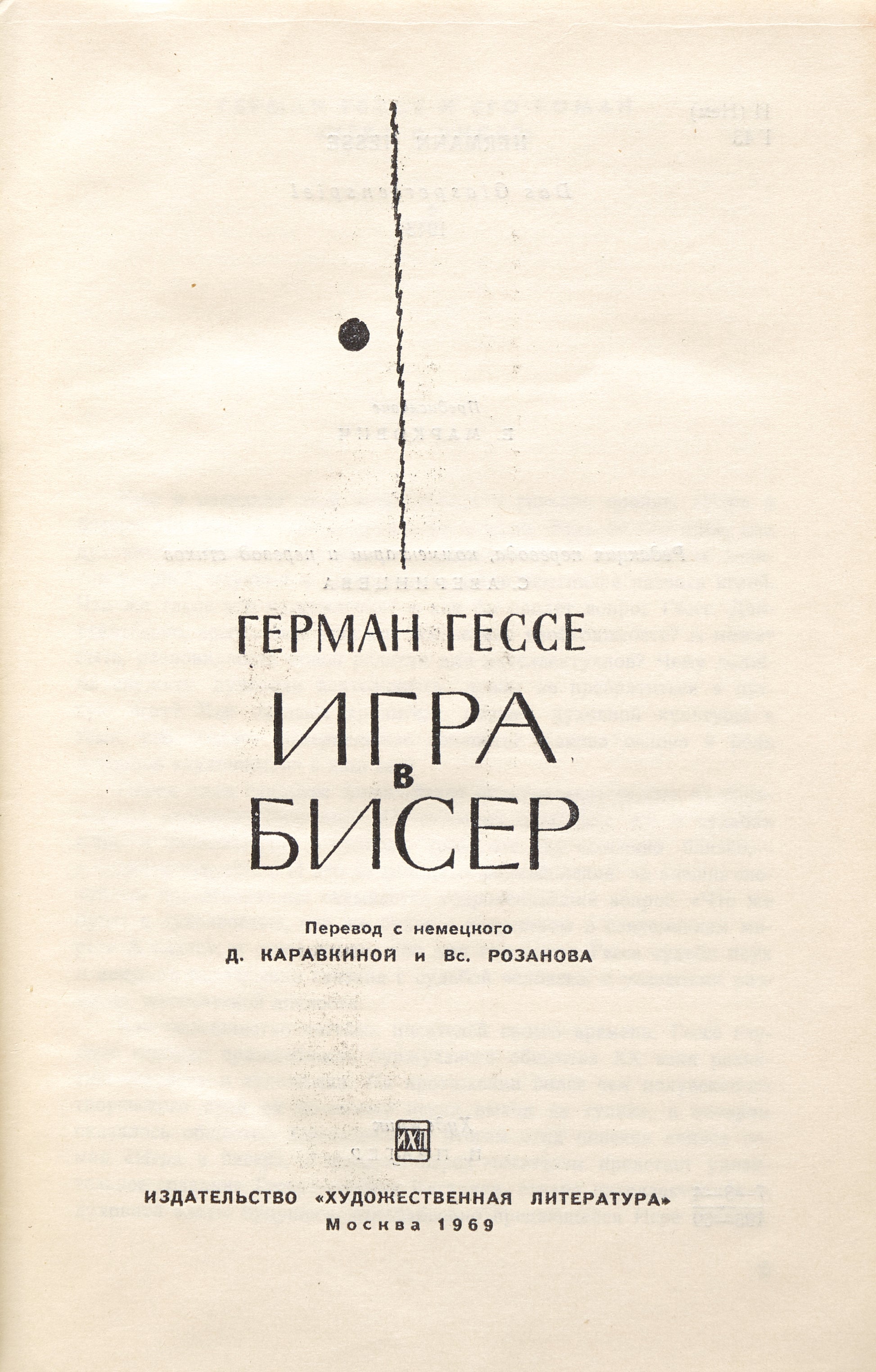 The first Russian edition of Hermann Hesse's last novel. This is the third Russian translation of any of Hesse's prose during the Soviet period and the only edition of this particular translation.