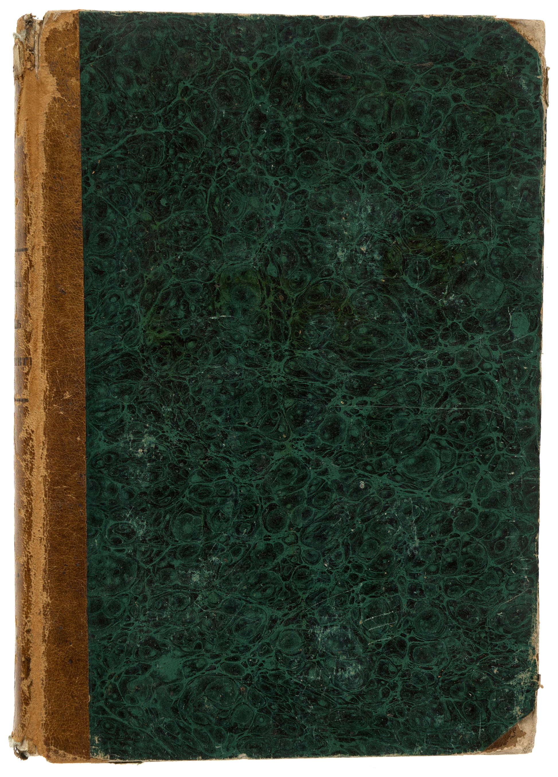 In good condition, rubbed, losses to corners and spine, traces of library label to spine, mark to title in ink, illegible library stamps in Arabic script, several leaves misbound out of sequence (pp. 241–256).