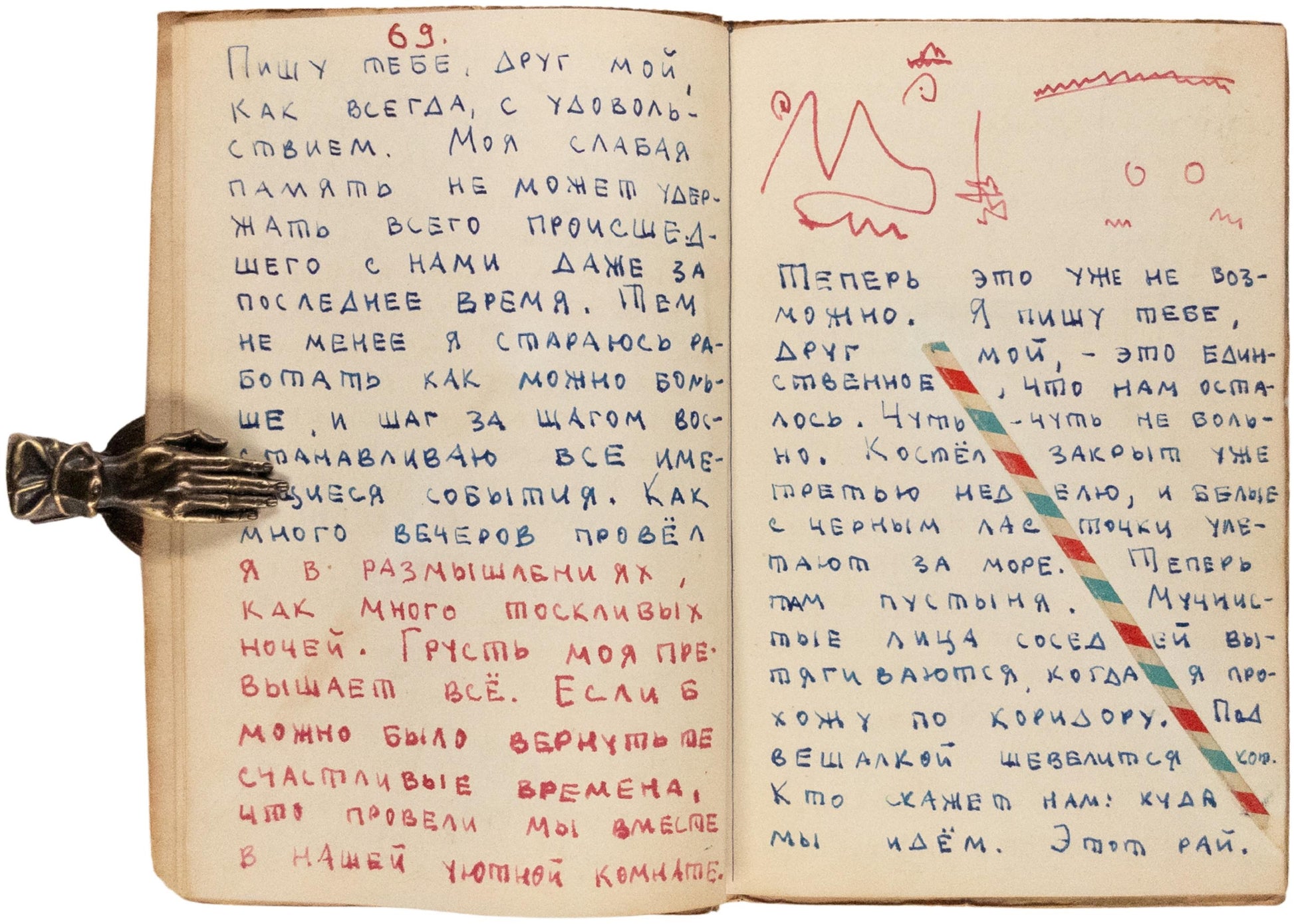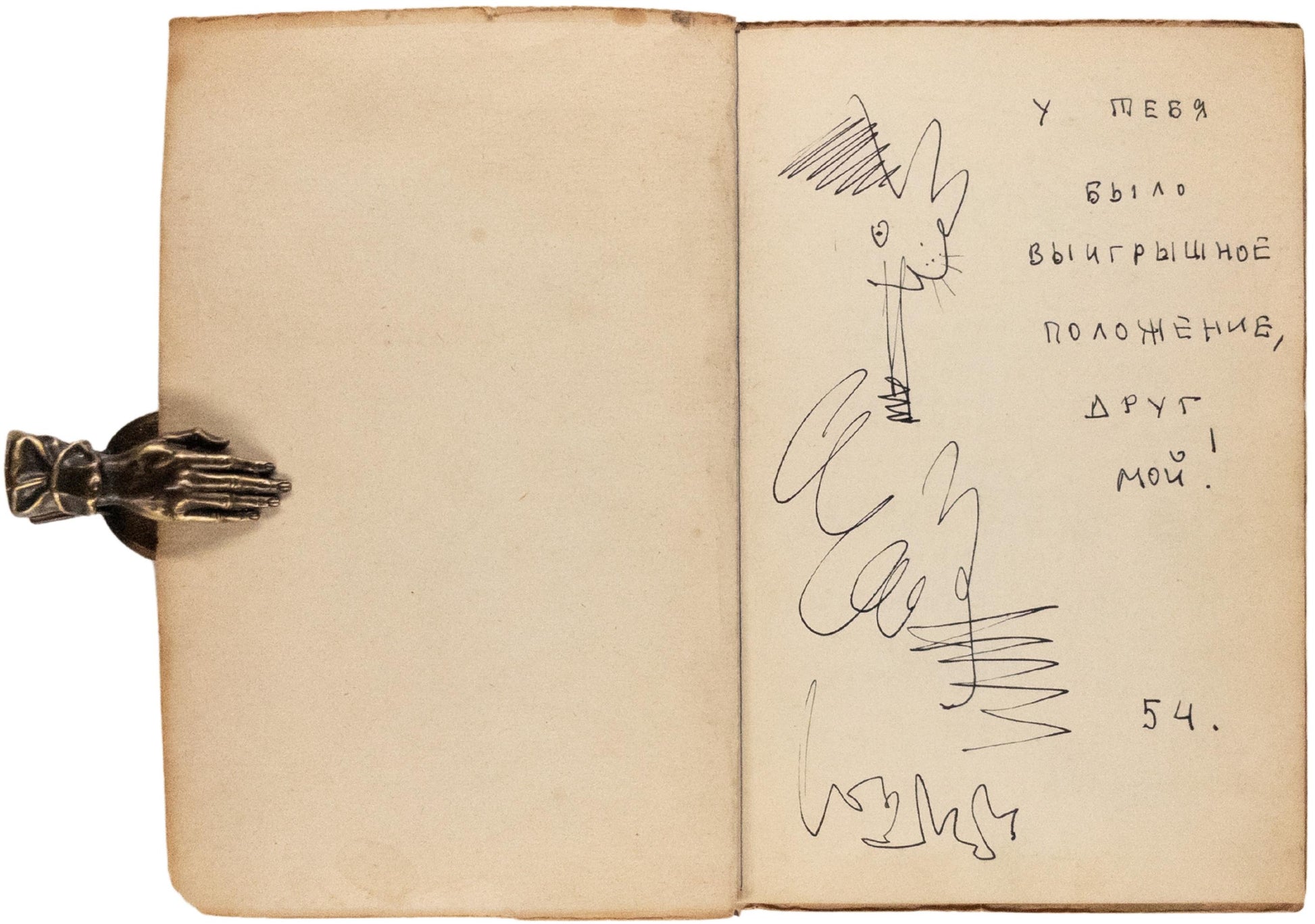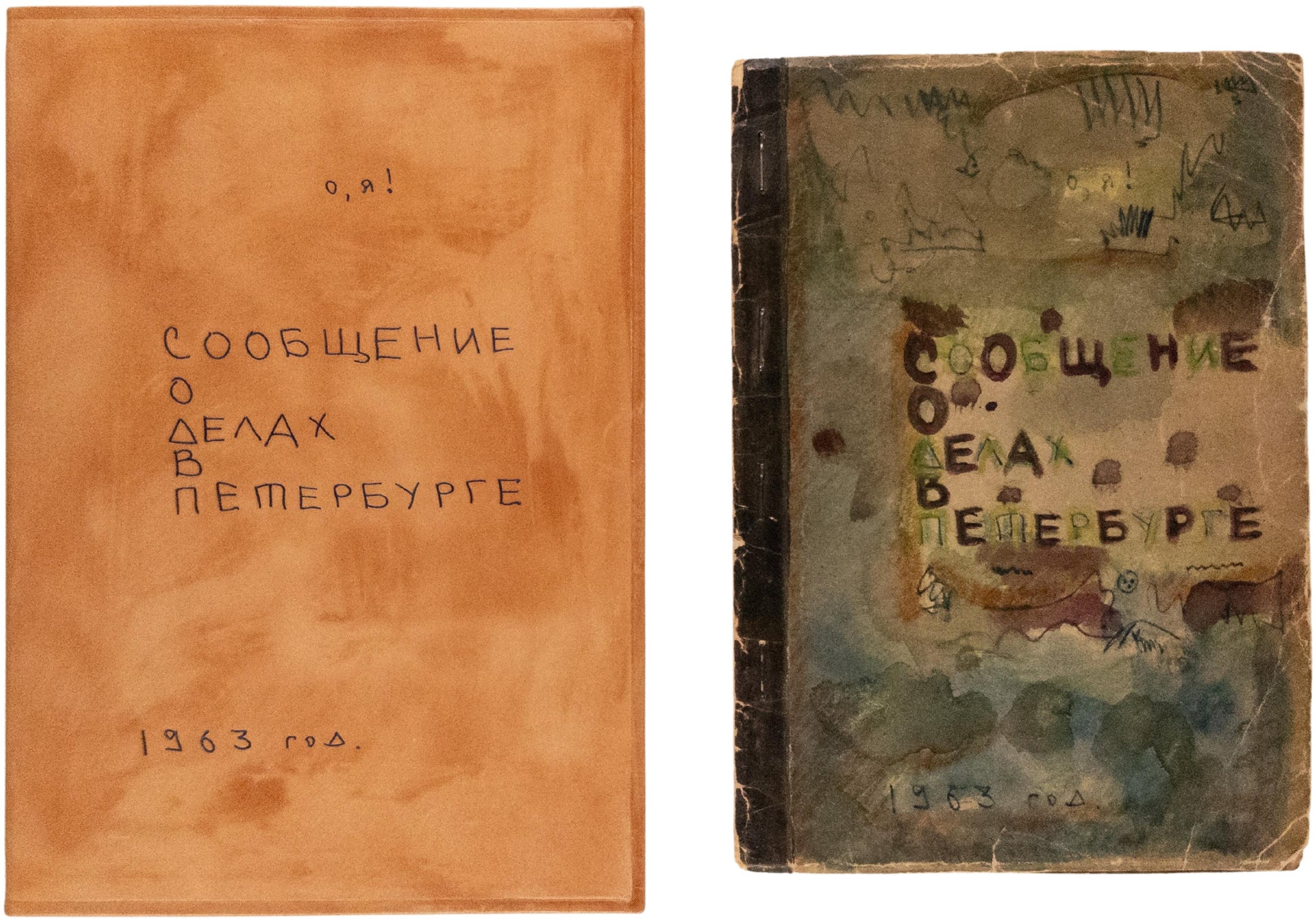 It is believed that Khvostenko's first book, 'Podozritel' ('The Suspector'), was originally published in samizdat in 1965. However, our copy of 'A Report on Matters in Petersburg' is dated 1963. Moreover, while 'The Suspector' circulated in samizdat in a simple design, this copy is a true artist’s book.