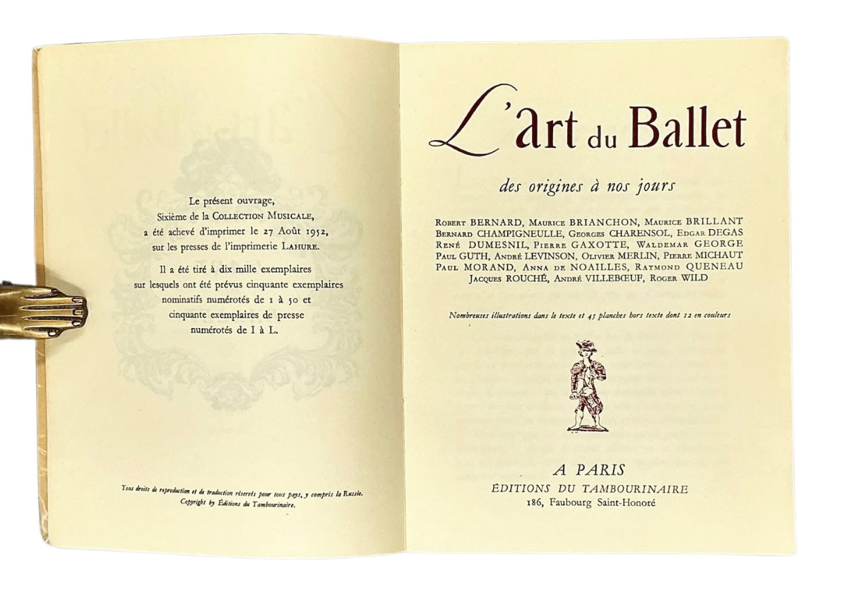 This book traces the history of ballet and was compiled from essays by the following 19 authors, writers, and dance critics: Robert Bernard, Maurice Brianchon, Maurice Brillant, Bernard Champigneulle, Georges Charensol, Edgar Degas, René Dumesnil, Pierre Gaxotte, Waldemar George, Paul Guth, André Levinson, Olivier Merlin, Pierre Michaut, Paul Morand, Anna de Noailles, Raymond Queneau, Jacques Rouché, André Villeboeuf, and Roger Wild.