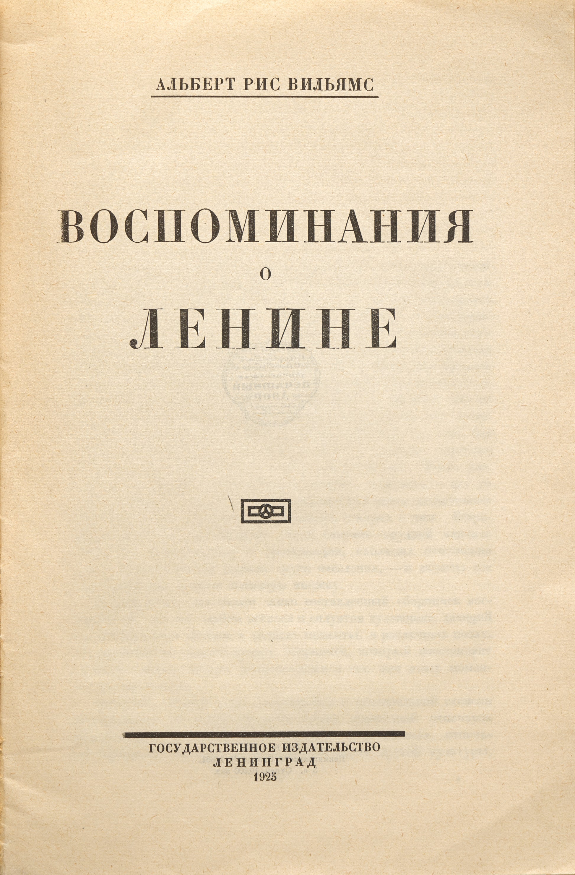 Williams, Albert Rhys [Lenin: The Man and His Work]. Vospominaniia o Lenine.