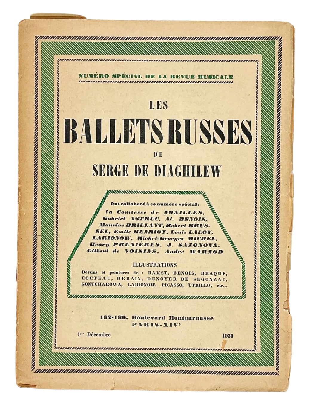 Drawings and paintings by: Bakst, Benois, Braque, Cocteau, Derain, Dunoyer de Segonzac, Gontcharova, Larionov, Picasso, Utrillo, and others.