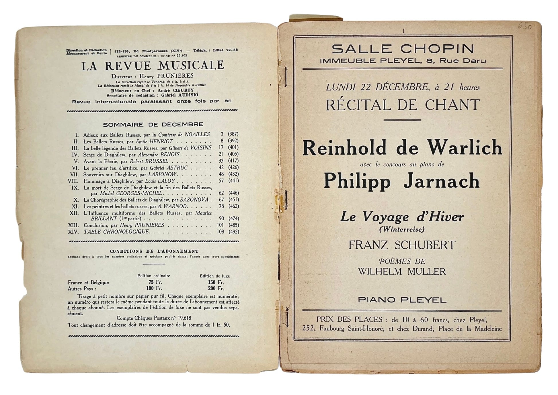 This special issue of the 'Revue Musicale' is dedicated to the Ballets Russes of Serge Diaghilev, delving into the groundbreaking contributions of this legendary company and its lasting influence on dance, art, and music. Through essays, reflections, and tributes by renowned artists, critics, and collaborators, it offers a vivid portrayal of Diaghilev’s visionary leadership and the cultural legacy of the Ballets Russes.