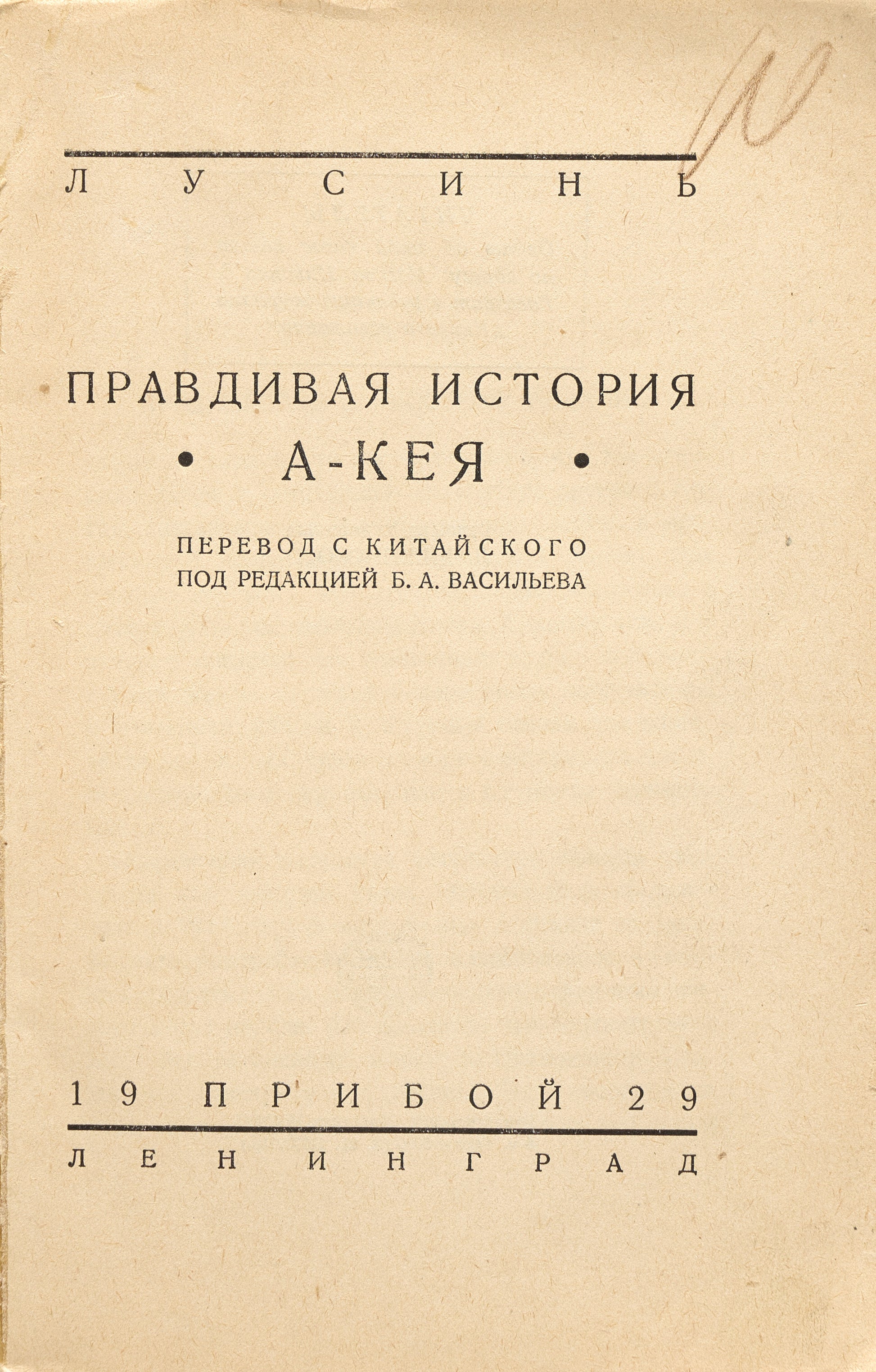 Lu Xun [The True Story of Ah Q]. Pravdivaia Istoriia A-Keia.
