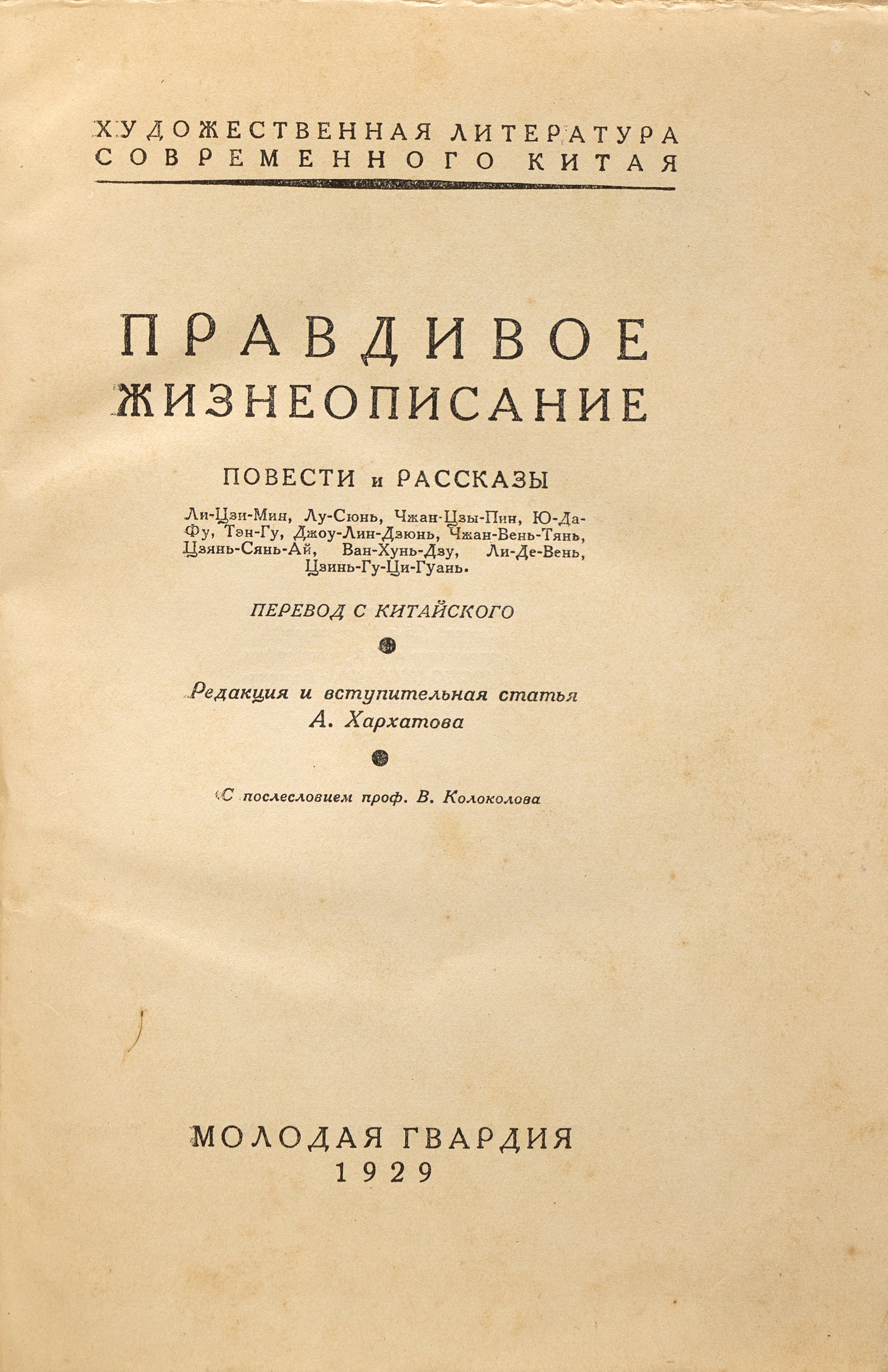 [Lu Xun, Li Jinming, Zhang Ziping, Yu Dafu, etc.] [True Biography: Novels and Stories]. Pravdivoe Zhizneopisanie: Povesti i rasskazy.