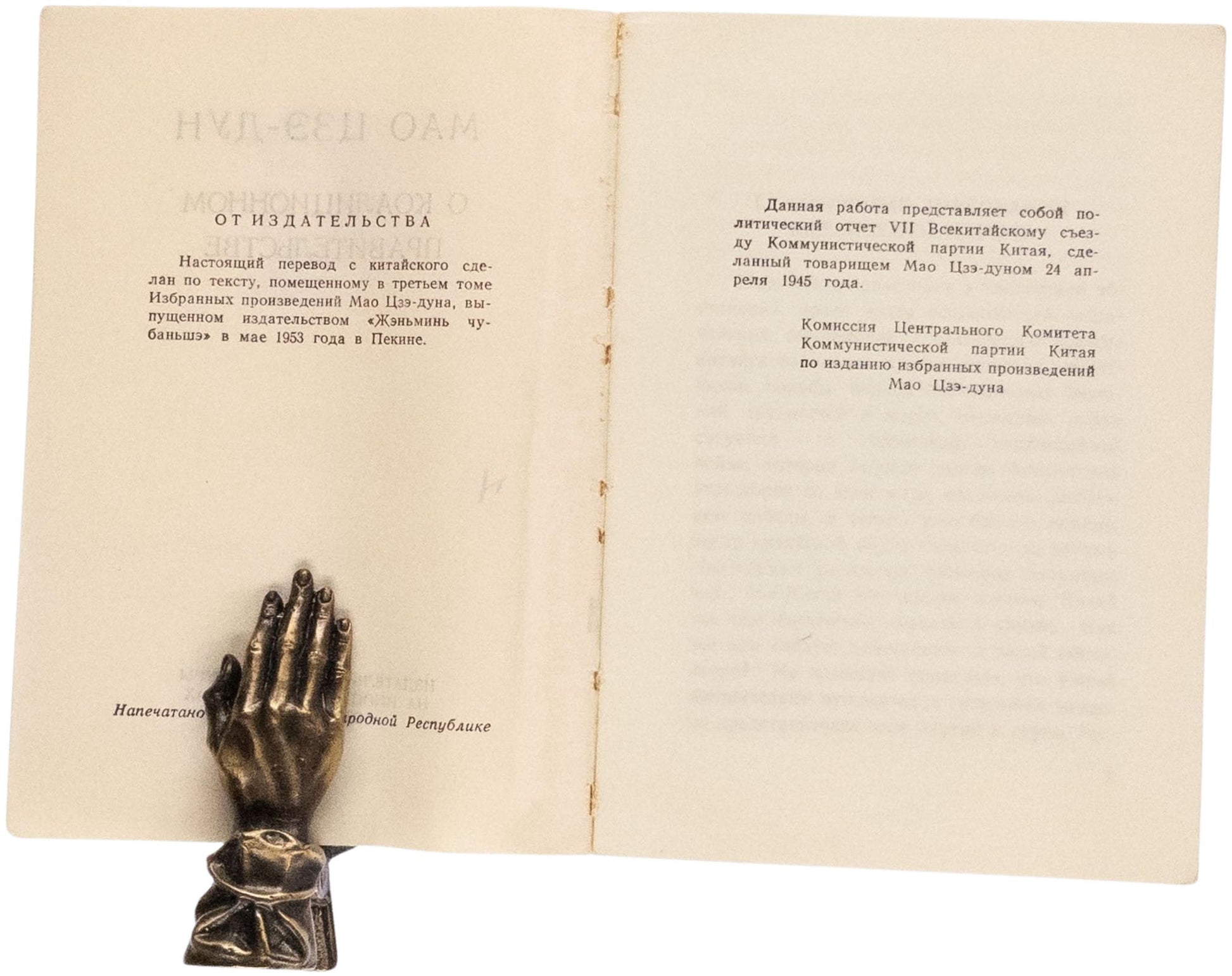 This book is the Russian translation of the political report delivered by Mao Zedong at the 7th National Congress of the Communist Party of China on April 24, 1945. The translation is based on the Chinese text included in Volume III of 'Selected Works of Mao Zedong', published in Beijing in May 1953.