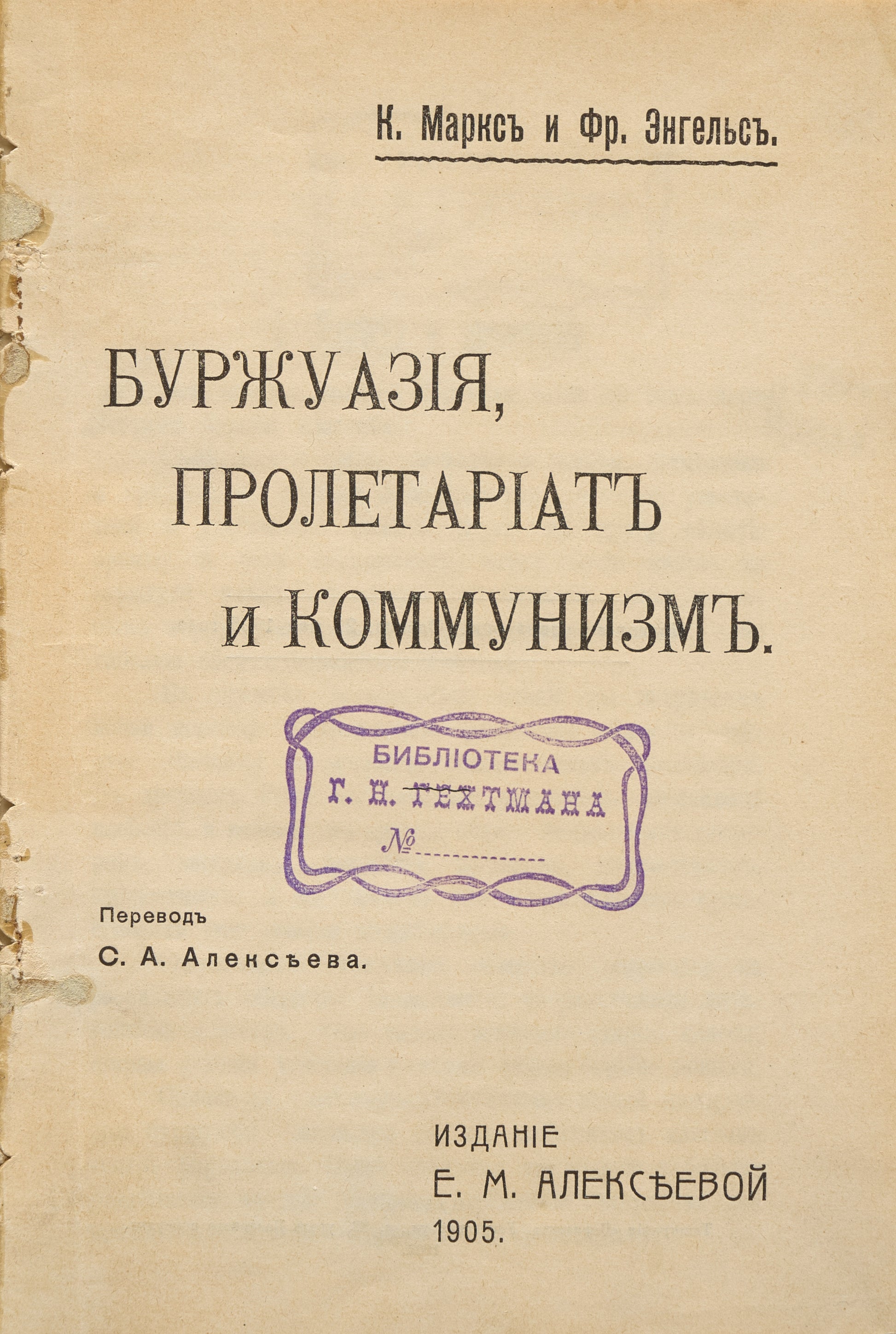 Bourgeoisie, Proletariat, and Communism. First legal Russian edition of 'The Communist Manifesto'.
