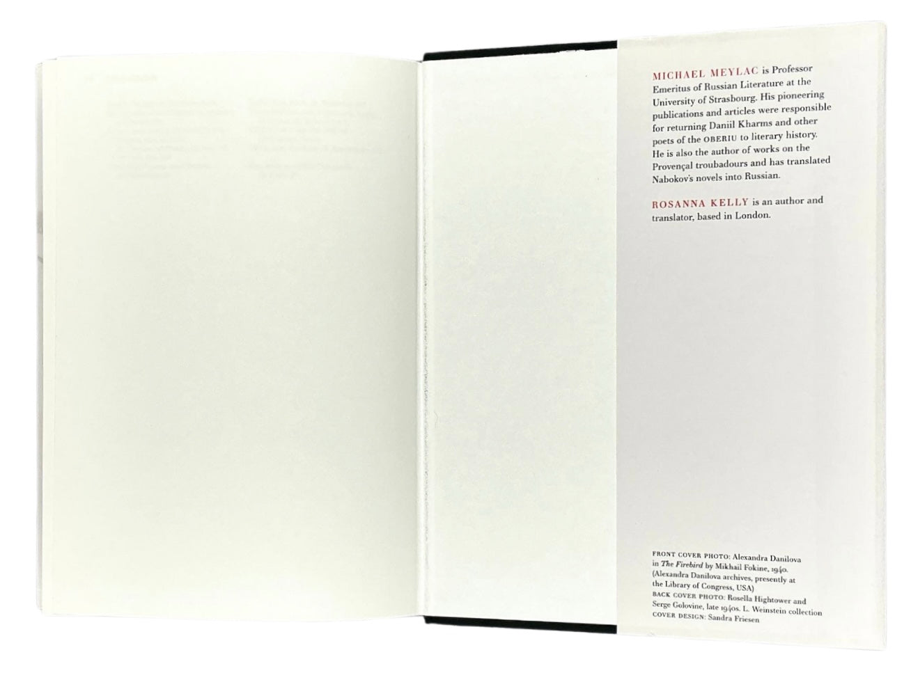 The book is a collection of conversations with Russian artists in emigration—ranging from dancers who worked with Anna Pavlova and Alicia Markova to choreographers such as Leonide Massine, George Balanchine, and Anton Dolin. It also includes Meylac’s insightful articles on the Ballets Russes and their impact in Europe, America, and Australia.