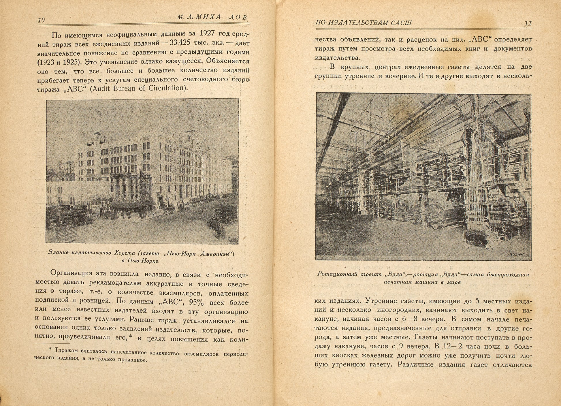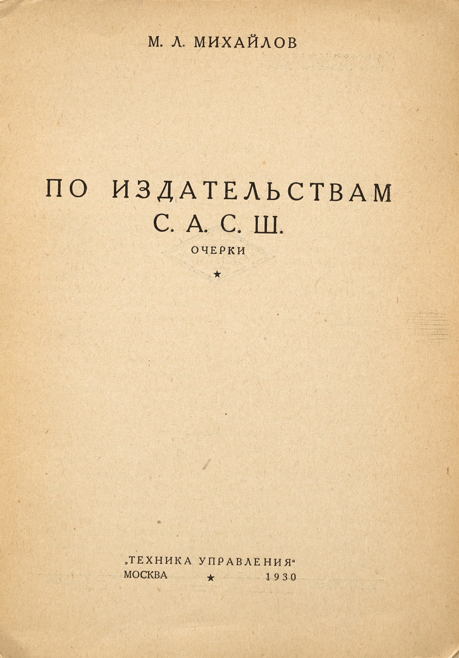 Mikhail Mikhailov (Meller; 1897-1938), the head of the Russian State Publishing House of Agricultural Literature, wrote this book after his trip to the United States. He was one of the first Soviet publishing workers to visit the USA.