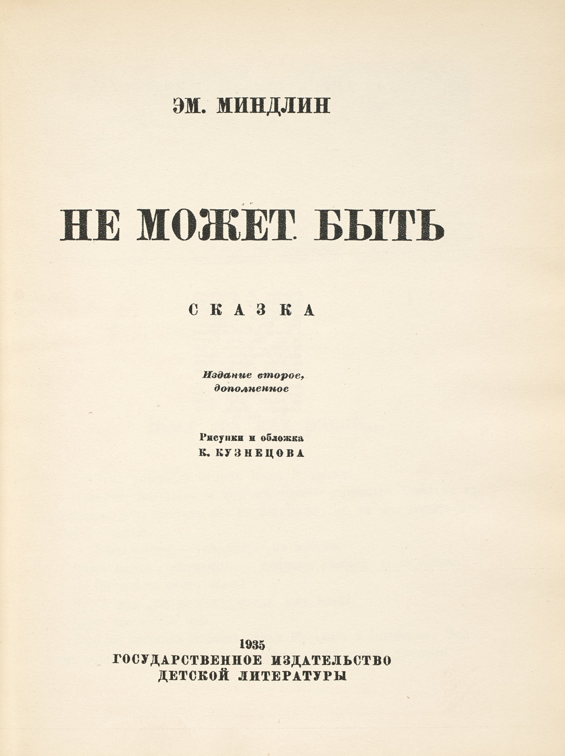[Moscow], Gosudarstvennoe izdatelstvo detskoi literatury, 1935.