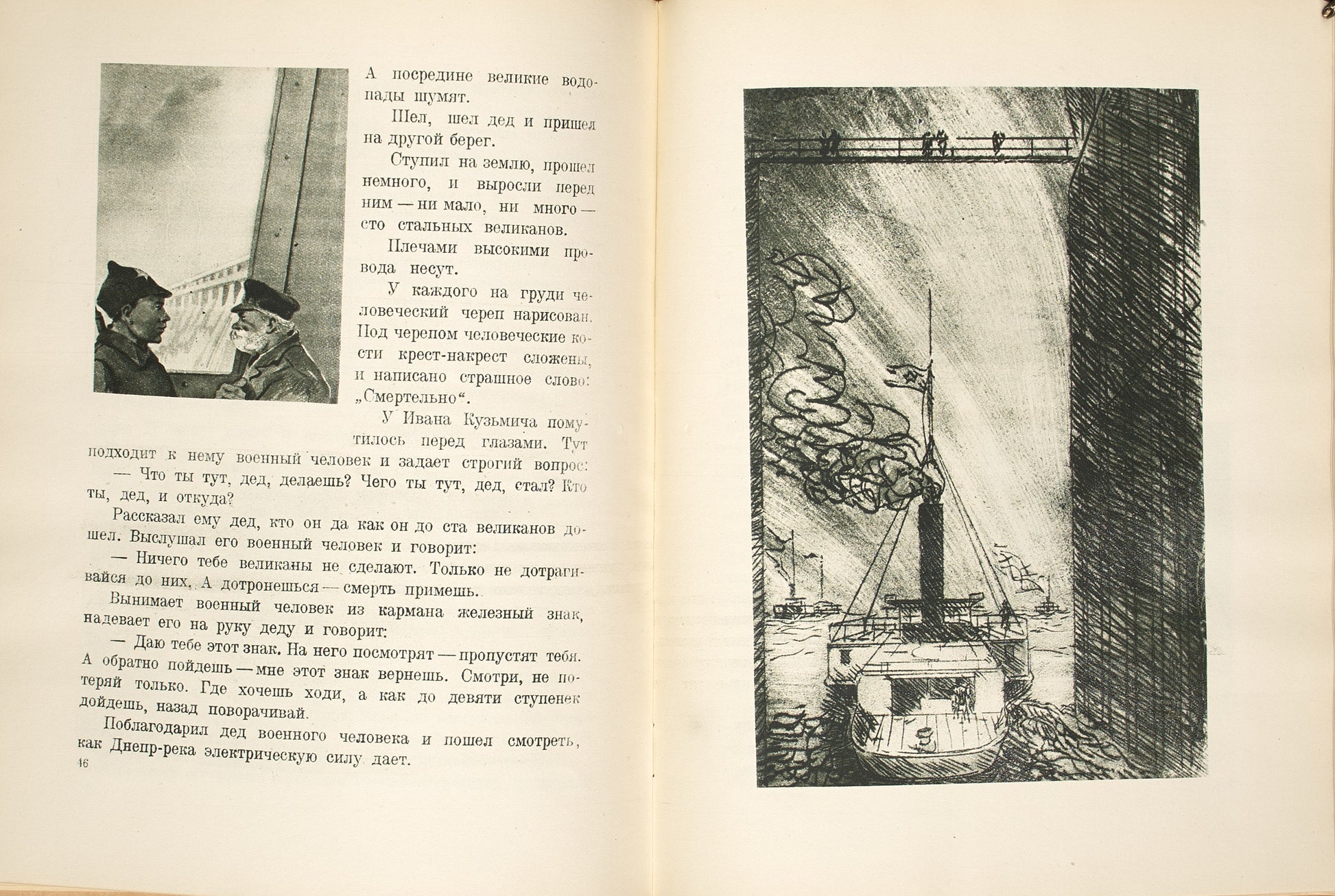 This story, authored by the renowned writer Emily Mindlin (1900-1981), explores the narrative of an elderly man who embarks on a journey to witness the construction of the Dnieper Hydroelectric Station, the largest hydroelectric power station on the Dnieper River. The initial Russian edition of this story was published in 1933, and in 1935, a second edition was released in Russian. Furthermore, in 1935, two translations of this book were published: one in German and the other in Yiddish.