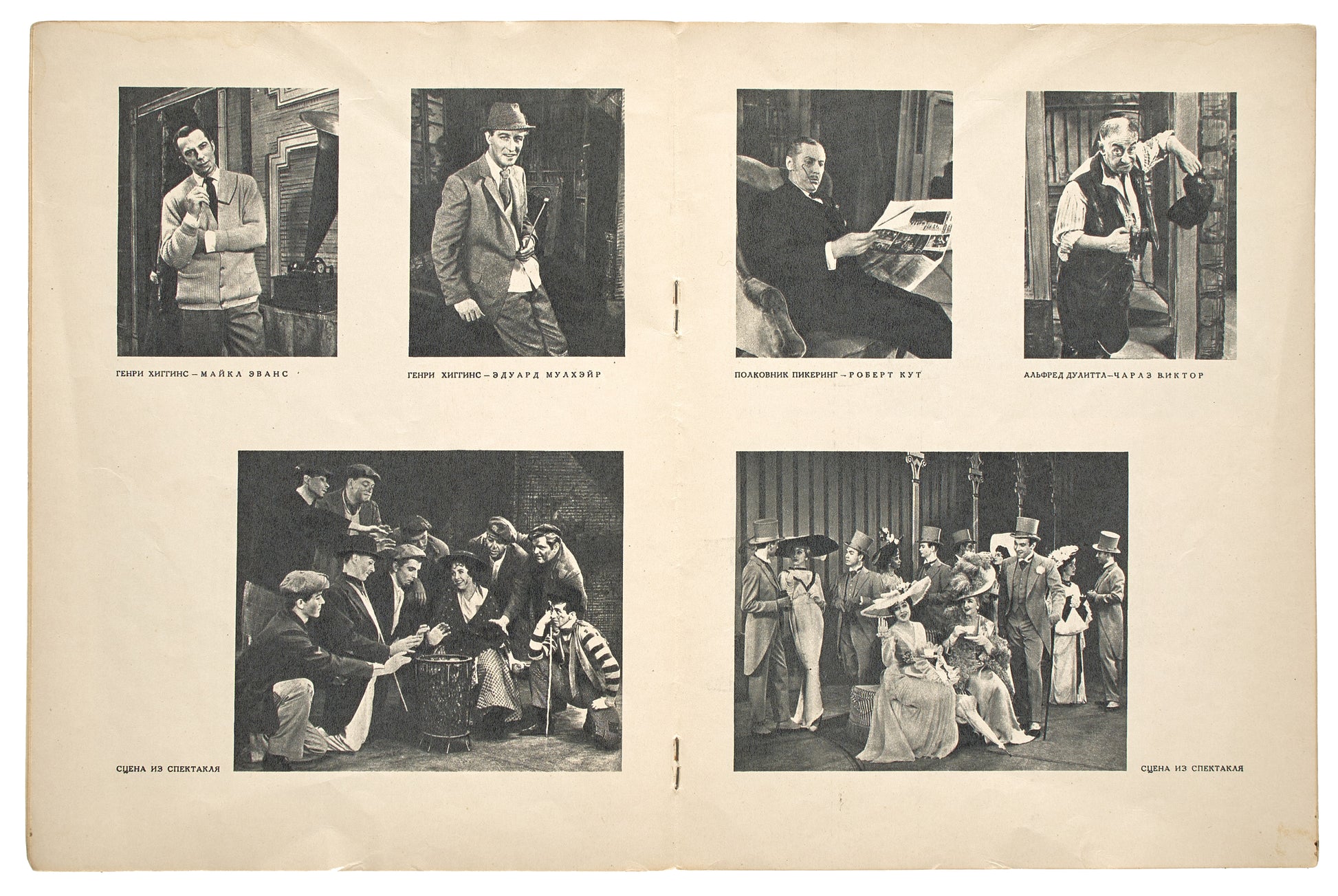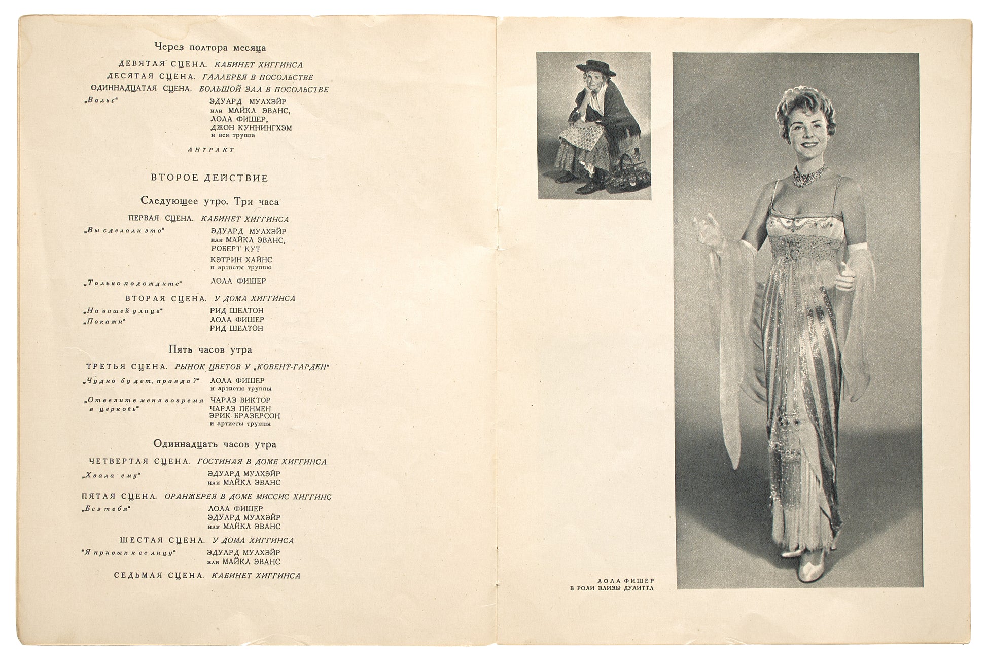 This is a pamphlet about the Russian tour of the musical 'My Fair Lady' by Frederick Loewe and Alan Jay Lerner. The show took place in Moscow, Leningrad, and Kiev in the middle of 1960.