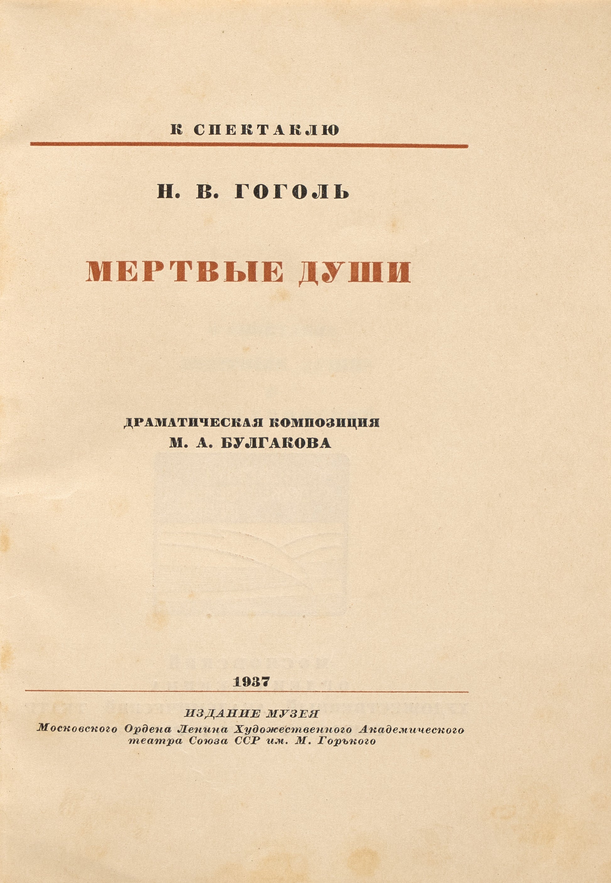 [N.V. Gogol Dead Souls. For the Performance: A Dramatic Composition by M. Bulgakov]. N.V. Gogol Mertvye Dushi. K Spektaklu: Dramaticheskaia kompozitsiia M. Bulgakova.