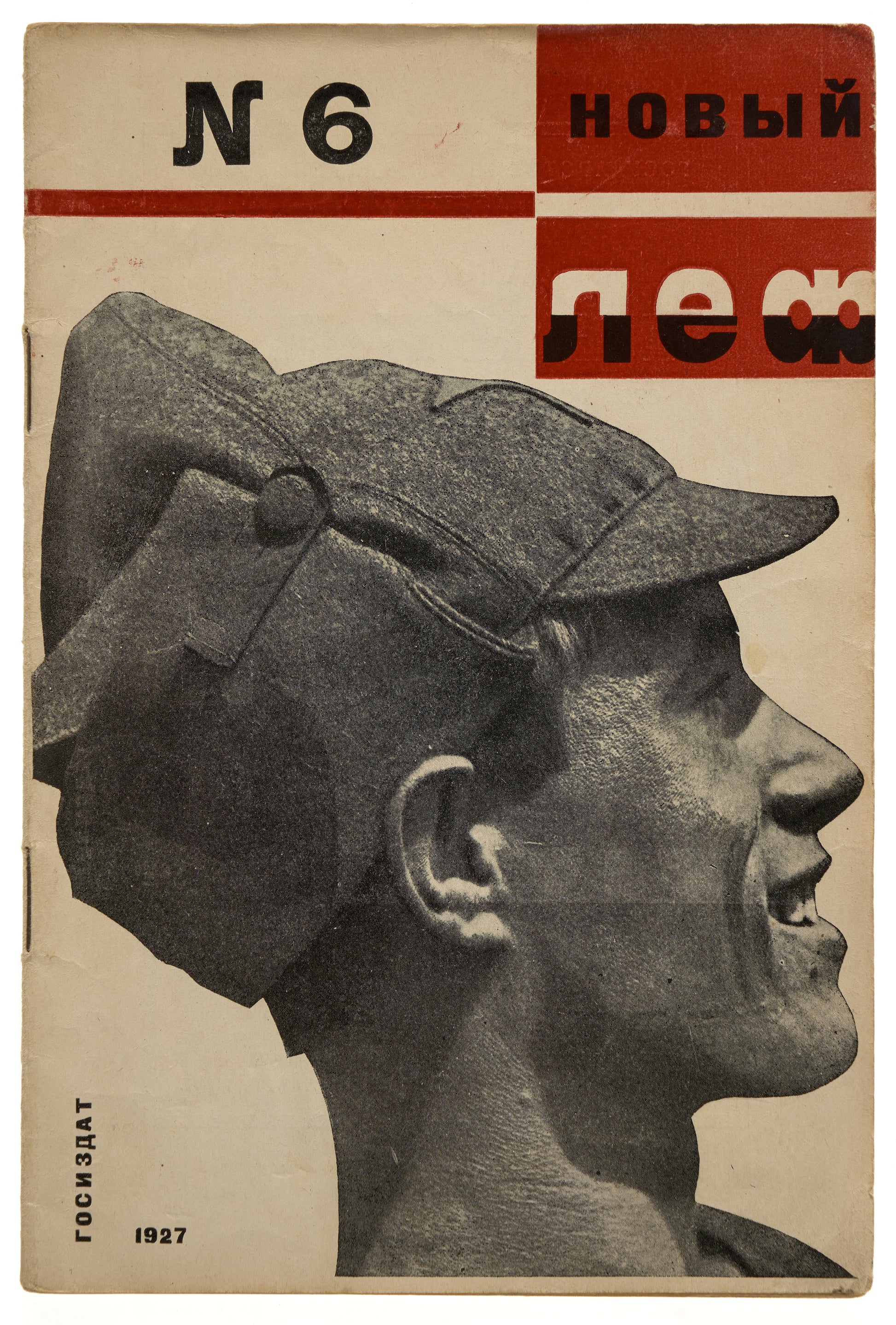 This issue of the prominent literary-critical periodical 'New LEF' features a cover designed by the renowned Soviet photographer and constructivist Alexander Rodchenko (1891–1956). For the cover, Rodchenko used a photograph of Ivan Morozov, a student at VKhUTEMAS, where Rodchenko taught.