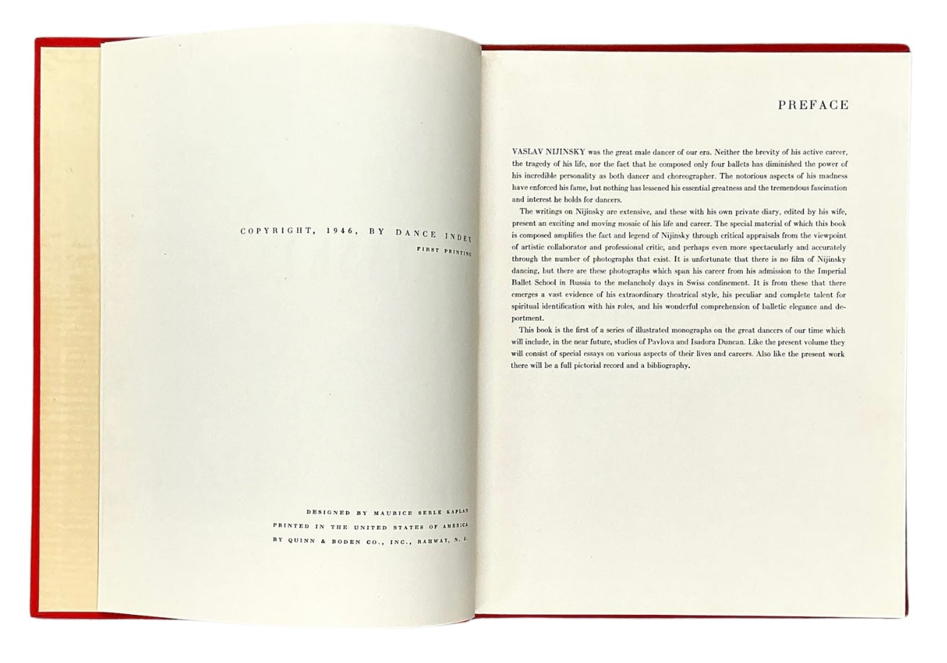It is also the first in a series of illustrated monographs by Paul Magriel (1906–1990), a renowned dance historian and author. Two subsequent volumes in the series were devoted to Anna Pavlova and Isadora Duncan.