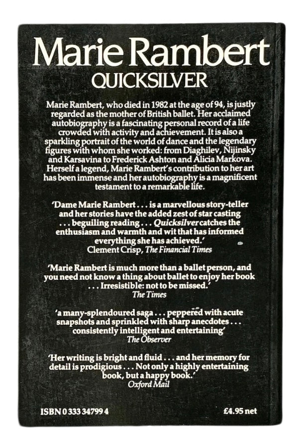 The autobiography of Marie Rambert (1888–1982), a Polish-born English dancer and pedagogue known as the mother of British ballet, reflects on her collaborations with legendary figures such as Diaghilev, Nijinsky, Karsavina, Frederick Ashton, and Alicia Markova, painting a vivid portrait of the golden age of ballet.