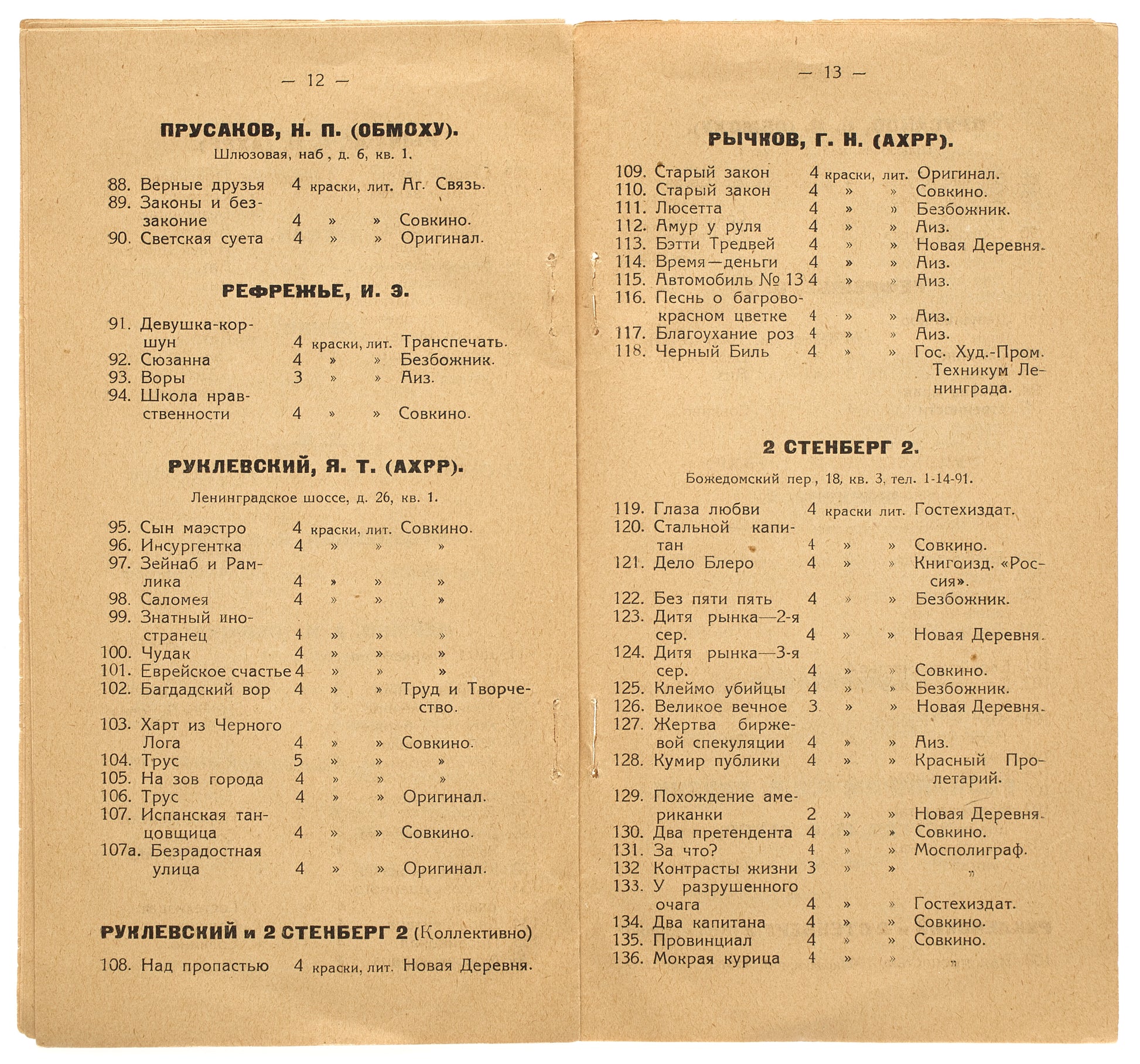 Second Exhibition of 'Cinema Posters'. Rare exhibition catalog with Stenberg Brothers' posters.