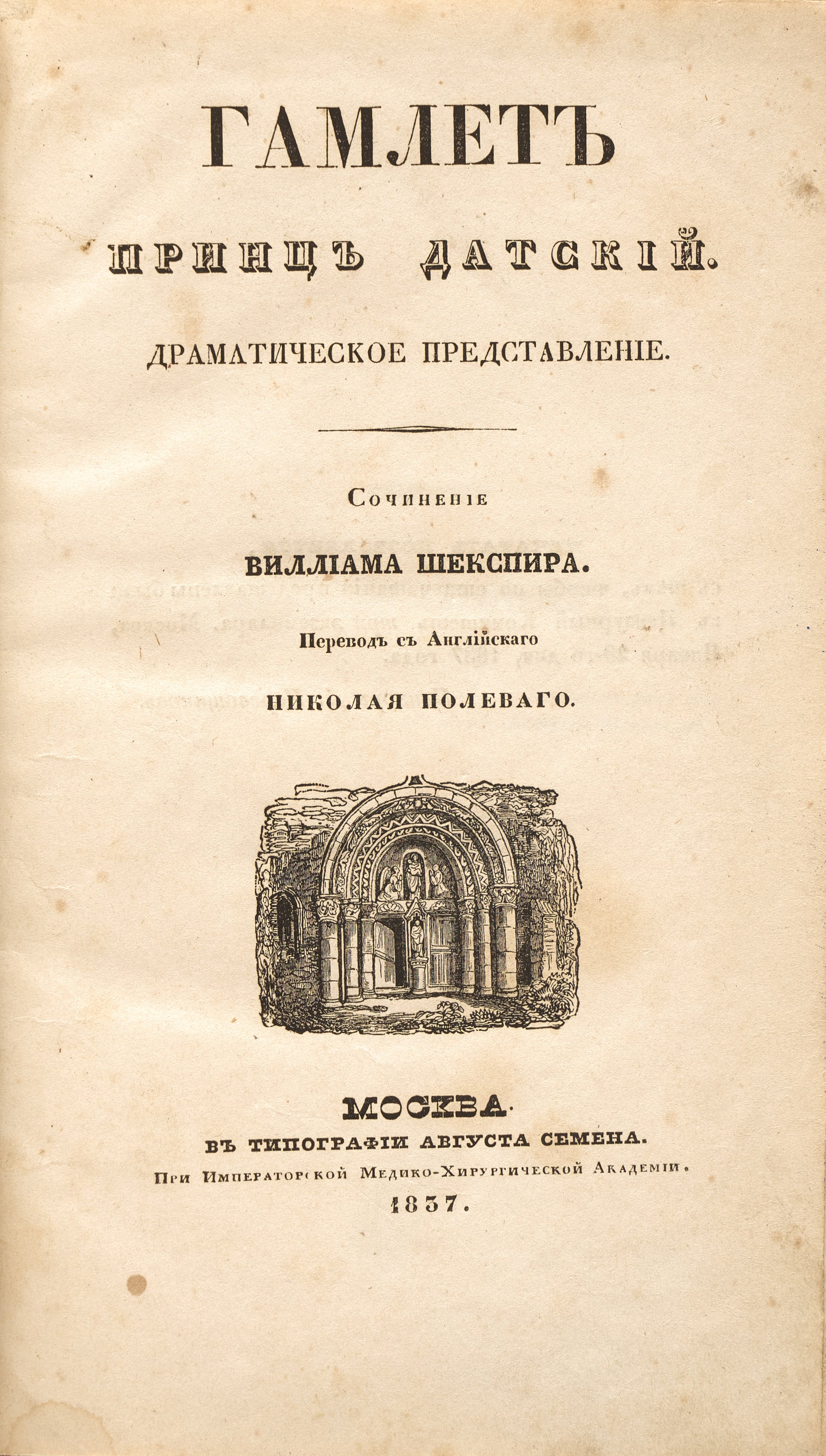 The first complete Russian translation of 'Hamlet' appeared in 1828, and a second full translation—by Nikolai Polevoy (1796–1846), a prominent journalist and Romantic writer—marked a pivotal moment in introducing Shakespeare’s tragedy to Russian audiences.