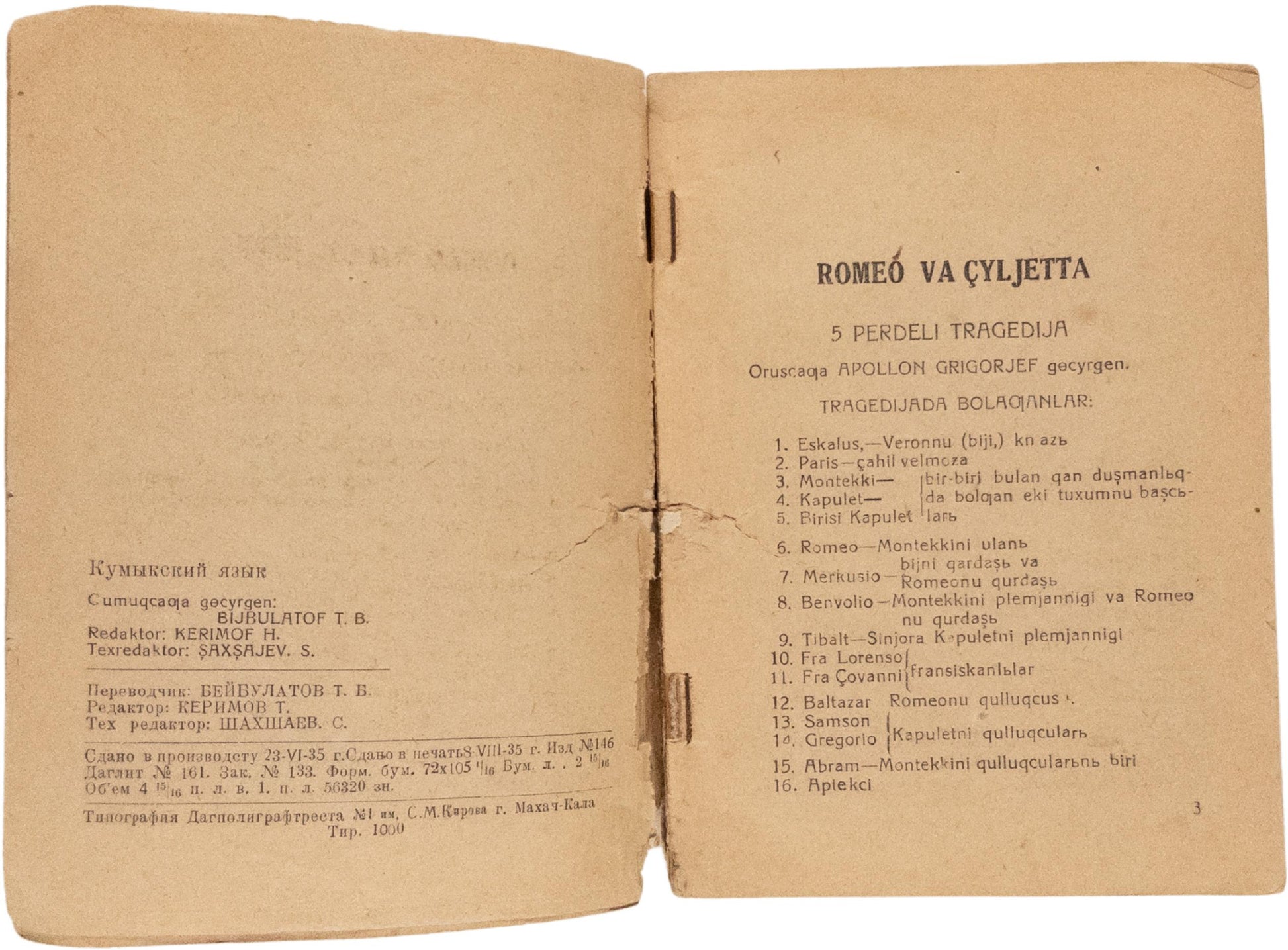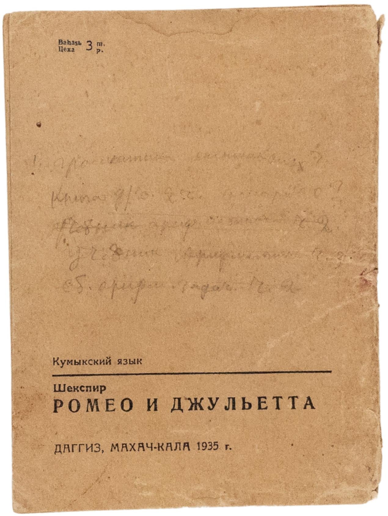 An extremely rare translation of 'Romeo and Juliet' into the Kumyk language. One of 1 000 copies published.