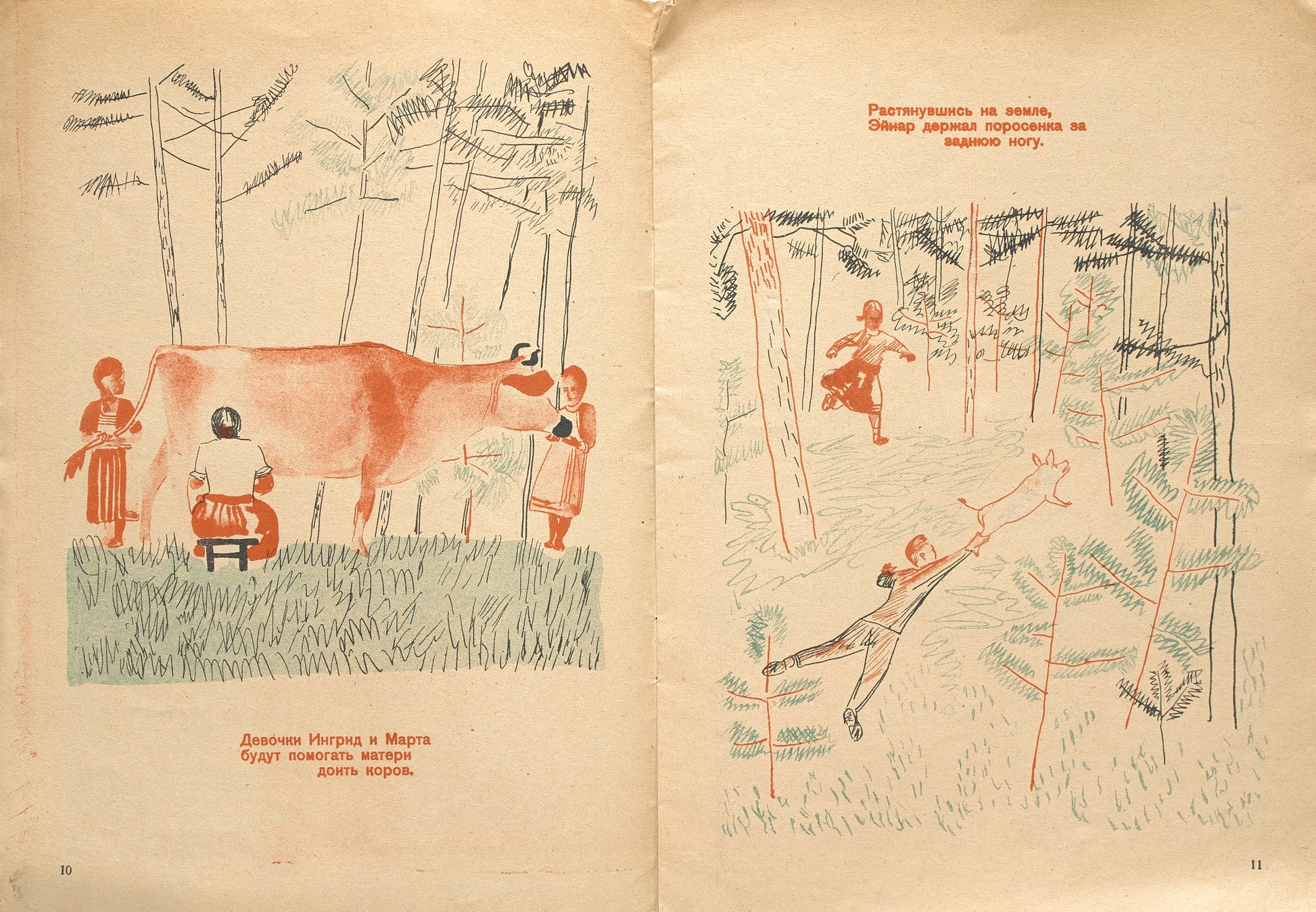 Illustrations for this issue of children magazine were created by the painter and graphic artist Aleksandr Deyneka (1899-1969), who is regarded as one of the most important Soviet modernist figurative painters of the first half of the 20th century. He studied at VKhUTEMAS under Ignatii Nivinskii and Vladimir Favorsky. Deyneka was one of the founders of the Society of Easel Painters (OST) and a member of the October Group, a collective of constructivist artists active from 1928 to 1932. In his early period, the artist depicted genre scenes as well as labor, often highlighting the beauty of the naked athletic body. In the late 1920s and early 1930s, he collaborated with children's publishing houses and several magazines.