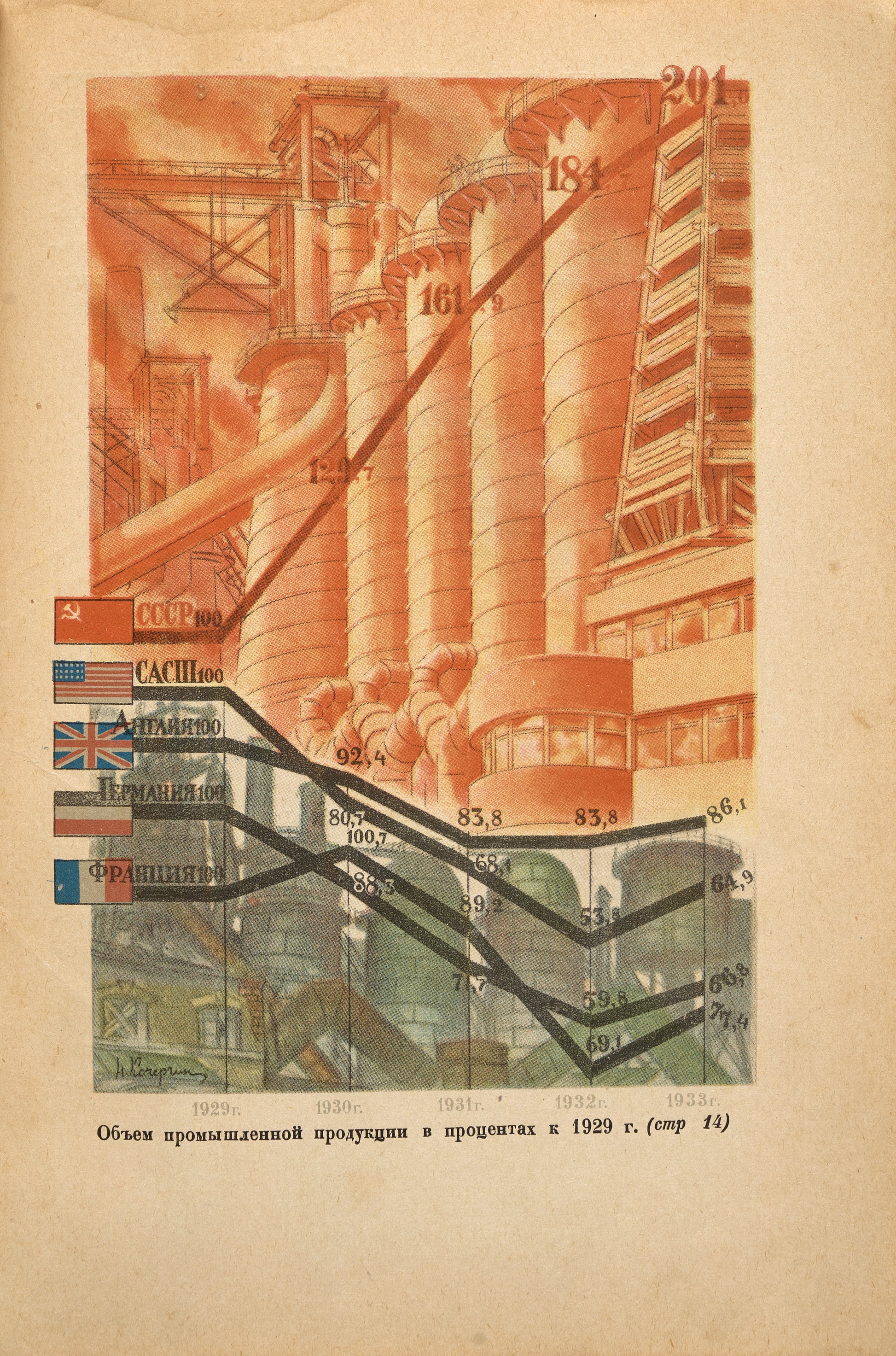 The book design was crafted by Nikolai Sedel'nikov (1905-1994), one of the principal book and graphic designers in Soviet Russia. He studied at VKhUTEMAS, where he was a pupil of Rodchenko, Lissitzky, and Tatlin, and collaborated with Gustav Klutsis and Solomon Telingater. Sedel'nikov was one of the pioneers of new typography in Soviet Russia. He won the Grand Prix at the World Exhibition in Paris in 1937 and the Golden Medal of the World Exhibition in New York in 1939 for the design of the USSR Constitution, together with S. Telingater and I. Rerberg.