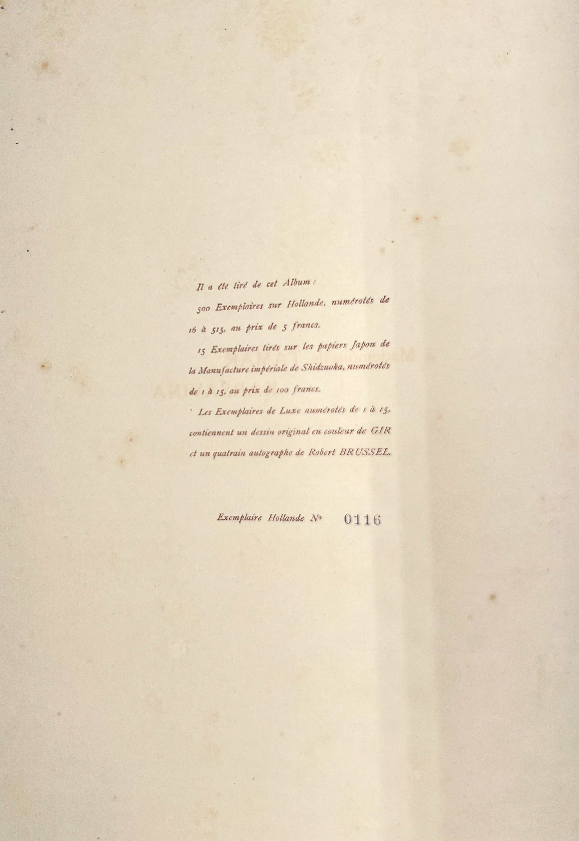 The text was written by French music critic Robert Brussel (1874–1940), one of the earliest advocates of Diaghilev's Ballets Russes in the late 1900s. In 1913, he also played a role in organizing the premiere of ‘The Rite of Spring’. The illustrations featuring portraits of Karsavina were created by Charles Gir (1883–1941), a renowned painter, watercolorist, sculptor, and illustrator. A frequent visitor to the Paris Opera, Gir was well-known for his depictions of ballerinas, particularly his pastels of Anna Pavlova and Tamara Karsavina, which brought him significant acclaim.