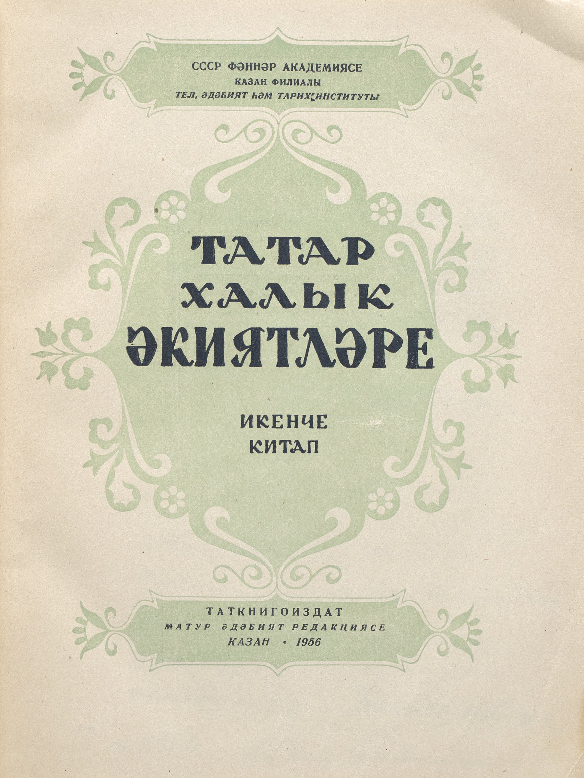 This scientific edition of Tatar folk tales was prepared by the Tatar Research Institute of Language, Literature, and History in Kazan (which became part of the Kazan branch of the USSR Academy of Sciences in 1946). Shortly after the institute's founding in 1939, numerous expeditions were organized to gather Tatar folklore. As a result of this extensive work, the first scientific collection was published in 1946, followed by this second book ten years later. While Tatar folklore and folk tales were occasionally studied, collected, and published even before the Russian Revolution, these editions were the first to do so in a scientific manner and are still considered authoritative today.